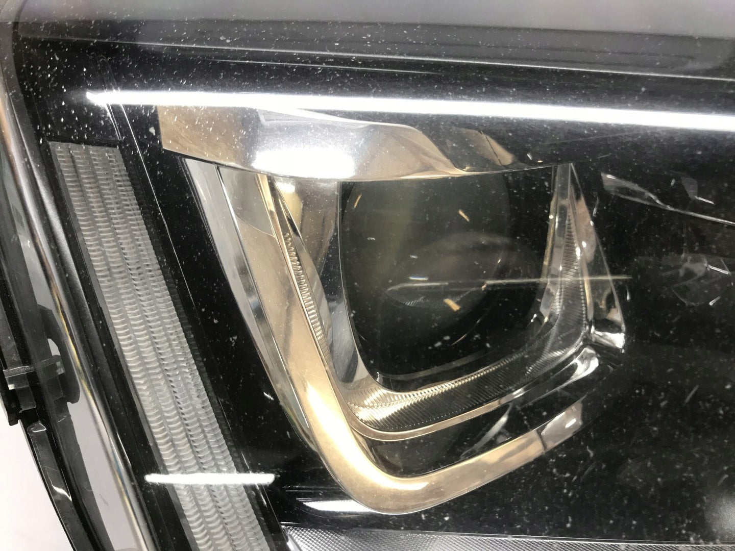 Please be aware that this headlight comes from a previously owned vehicle and has some cosmetic imperfections, including visible scratches on the glass and a damaged bracket. The scratches are superficial and do not impact the headlight's functionality, although they may affect aesthetic appeal for those seeking perfection. The bracket damage can typically be repaired using an original repair kit, enabling a reliable and secure installation that can be performed by individuals with basic mechanical skills or by a professional technician.