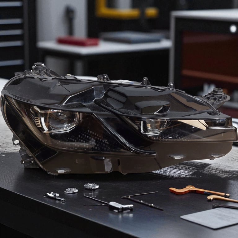 Please be aware that this headlight assembly is from a previously owned vehicle and includes a damaged bracket. However, the bracket damage can often be effectively repaired using an original repair kit, allowing for a reliable and secure installation. This repair can typically be performed by those with basic mechanical skills or by a professional if preferred.
