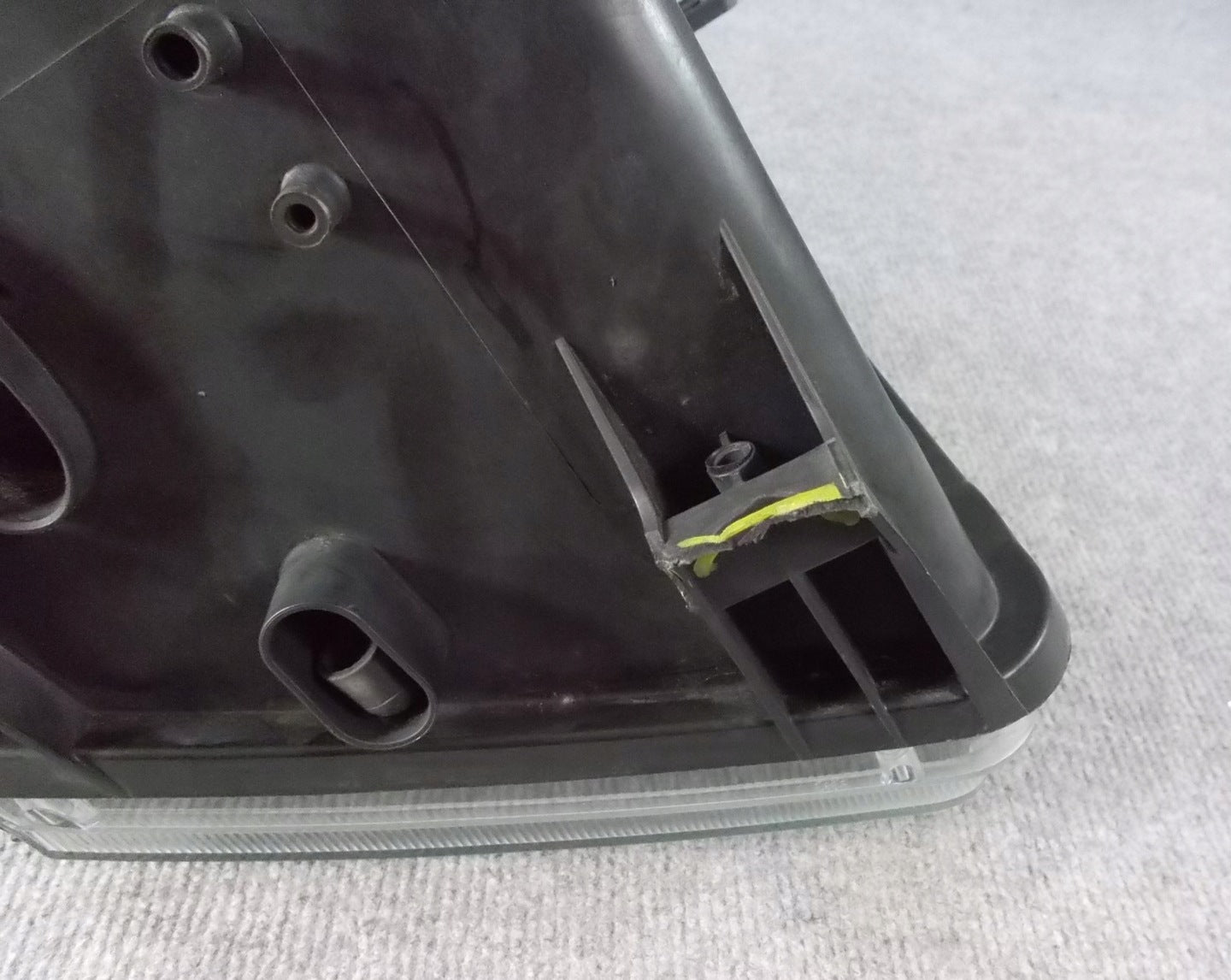 Please be aware that this headlight assembly is from a previously owned vehicle and includes a damaged bracket. However, the bracket damage can often be effectively repaired using an original repair kit, allowing for a reliable and secure installation. This repair can typically be performed by those with basic mechanical skills or by a professional if preferred.