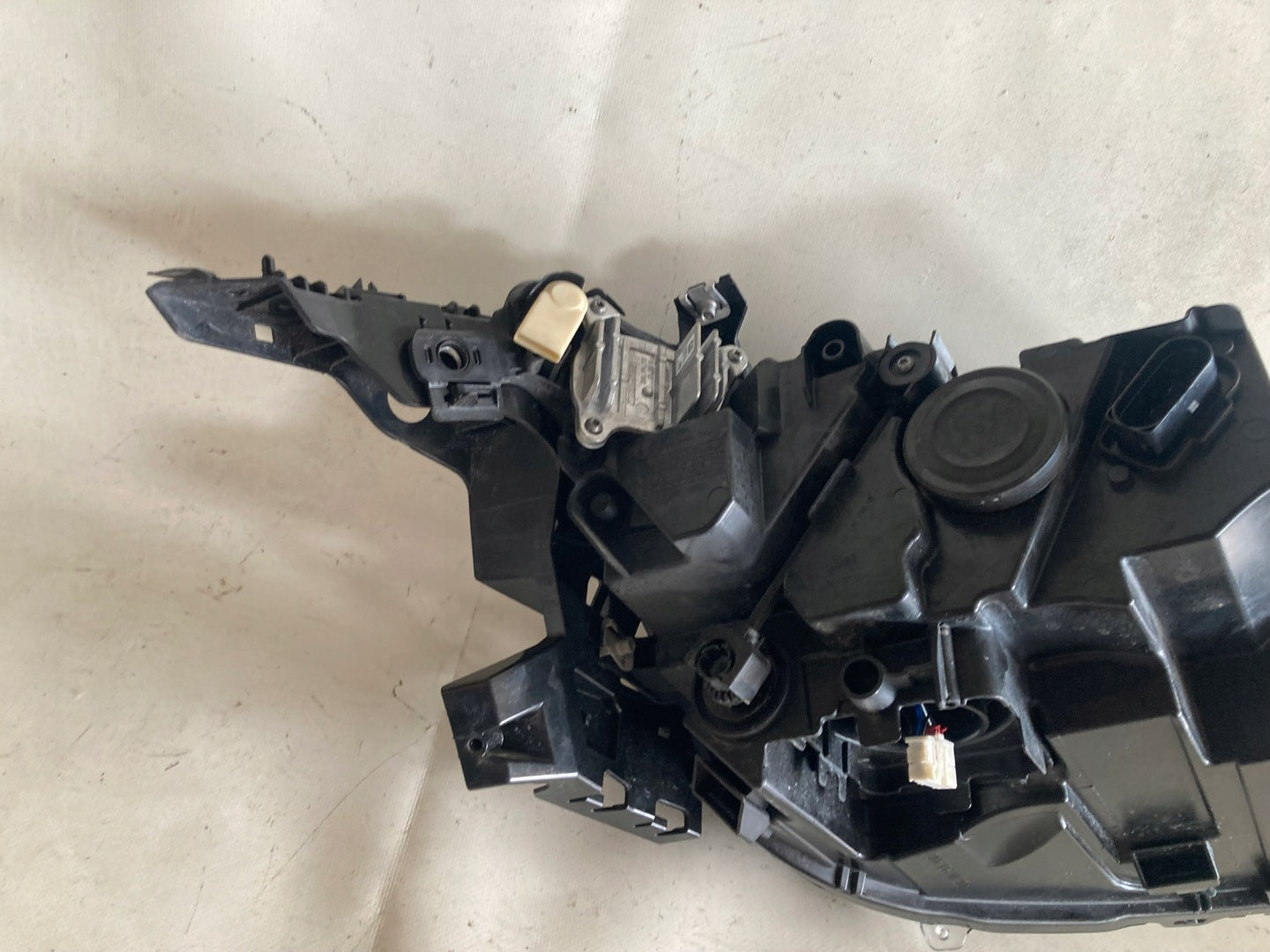 Please be aware that this headlight assembly is from a previously owned vehicle and includes a damaged bracket. However, the bracket damage can often be effectively repaired using an original repair kit, allowing for a reliable and secure installation. This repair can typically be performed by those with basic mechanical skills or by a professional if preferred.