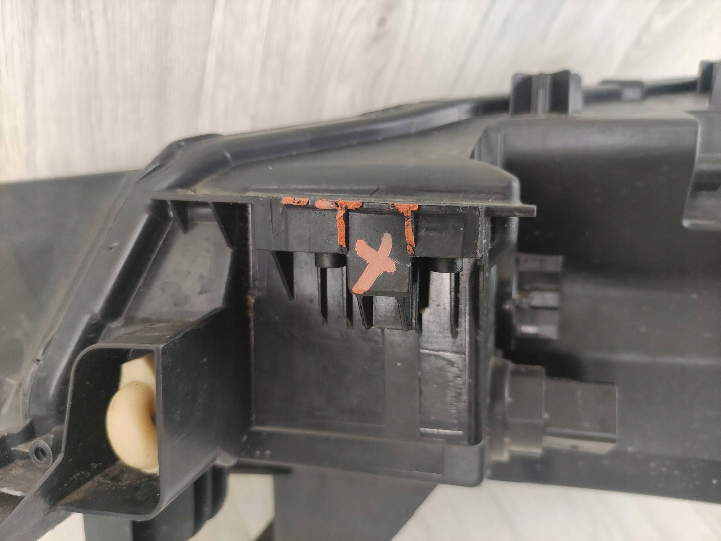Please be aware that this headlight assembly is from a previously owned vehicle and includes a damaged bracket. However, the bracket damage can often be effectively repaired using an original repair kit, allowing for a reliable and secure installation. This repair can typically be performed by those with basic mechanical skills or by a professional if preferred.