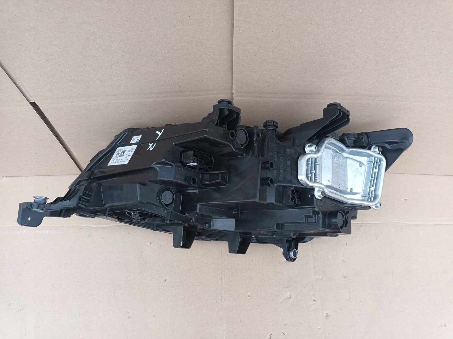 Please be aware that this headlight comes from a previously owned vehicle and has some cosmetic imperfections, including visible scratches on the glass and a damaged bracket. The scratches are superficial and do not impact the headlight's functionality, although they may affect aesthetic appeal for those seeking perfection. The bracket damage can typically be repaired using an original repair kit, enabling a reliable and secure installation that can be performed by individuals with basic mechanical skills or by a professional technician.