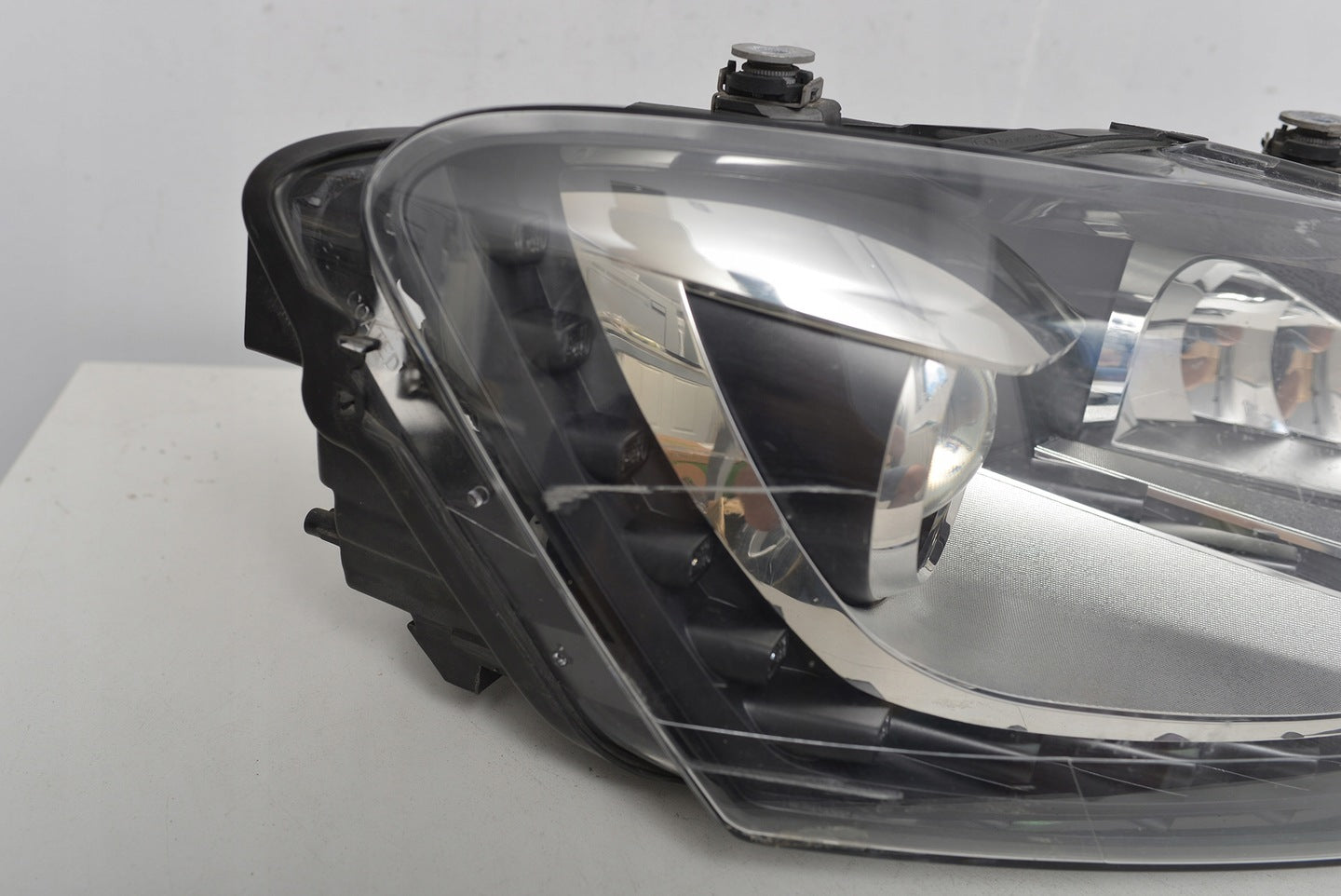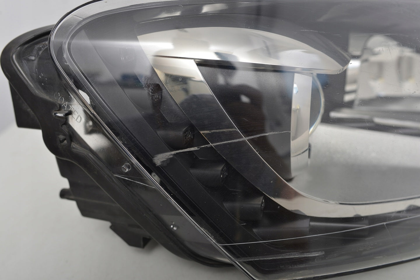 Please note that this headlight comes from a previously owned vehicle and has some cosmetic imperfections. There are visible scratches on the glass which do not affect the functionality but should be considered if aesthetic perfection is a priority. The scratches are superficial and the headlight remains fully operational, providing a practical solution for those looking to replace damaged or malfunctioning headlights without the cost of a brand-new part.