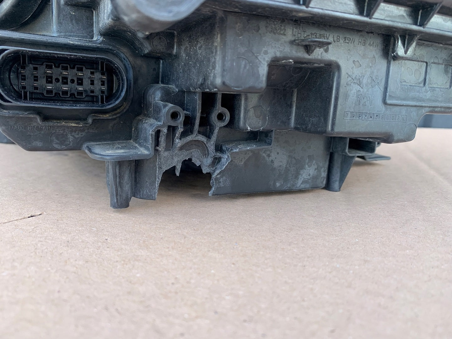 Please be aware that this headlight assembly is from a previously owned vehicle and includes a damaged bracket. However, the bracket damage can often be effectively repaired using an original repair kit, allowing for a reliable and secure installation. This repair can typically be performed by those with basic mechanical skills or by a professional if preferred.