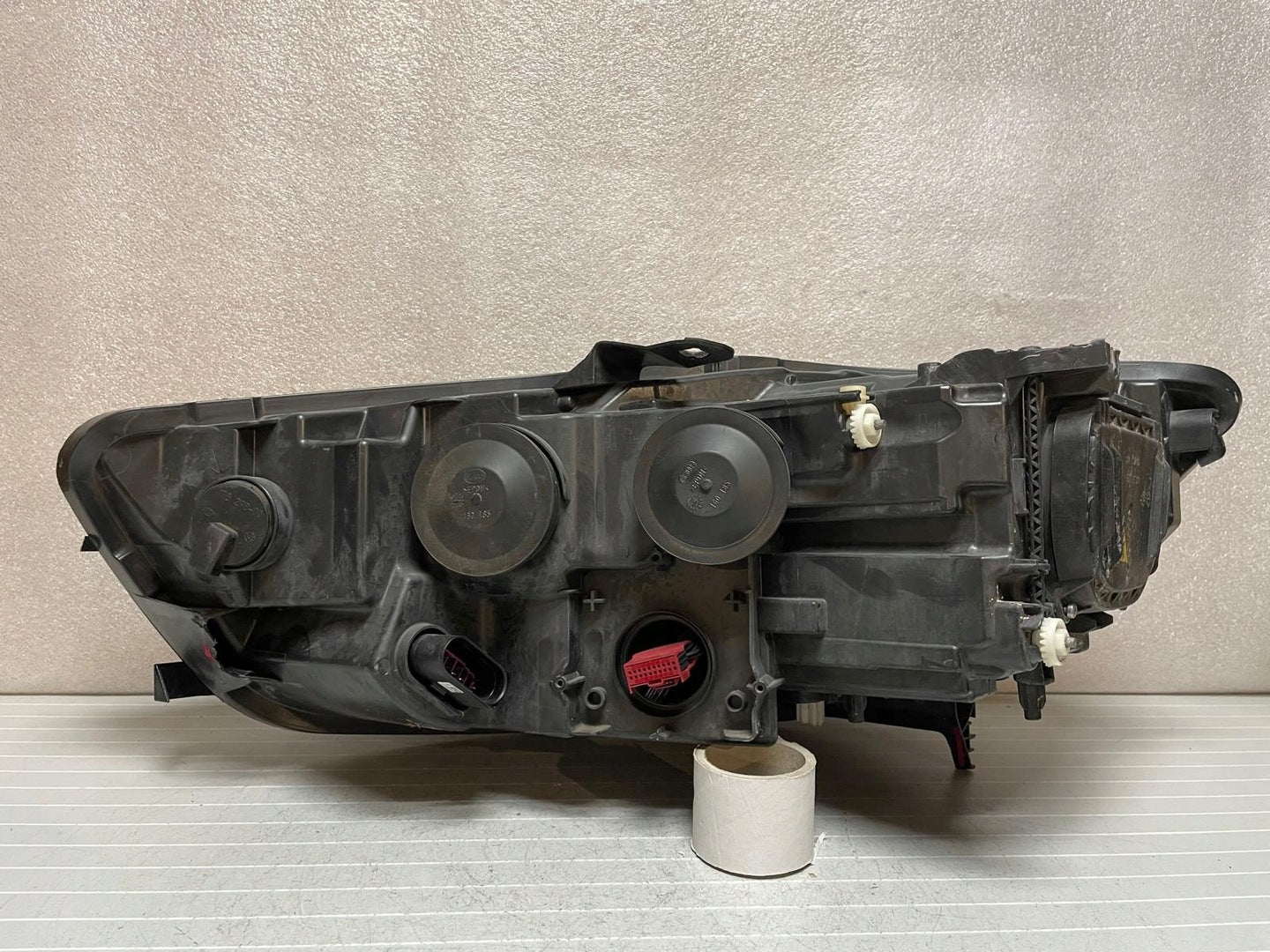 Please be aware that this headlight assembly is from a previously owned vehicle and includes a damaged bracket. However, the bracket damage can often be effectively repaired using an original repair kit, allowing for a reliable and secure installation. This repair can typically be performed by those with basic mechanical skills or by a professional if preferred.