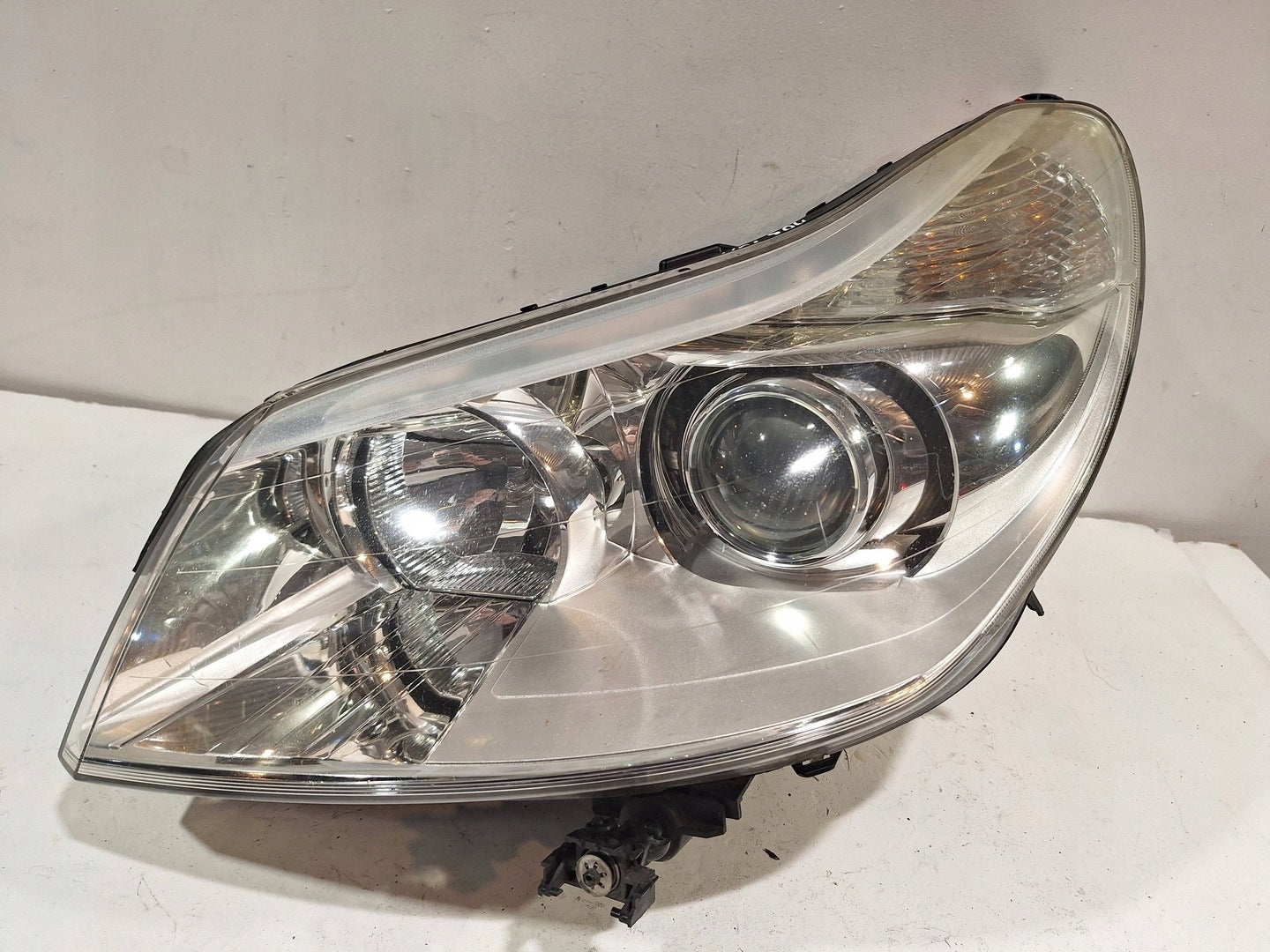 Please be aware that this headlight comes from a previously owned vehicle and has some cosmetic imperfections, including visible scratches on the glass and a damaged bracket. The scratches are superficial and do not impact the headlight's functionality, although they may affect aesthetic appeal for those seeking perfection. The bracket damage can typically be repaired using an original repair kit, enabling a reliable and secure installation that can be performed by individuals with basic mechanical skills or by a professional technician.