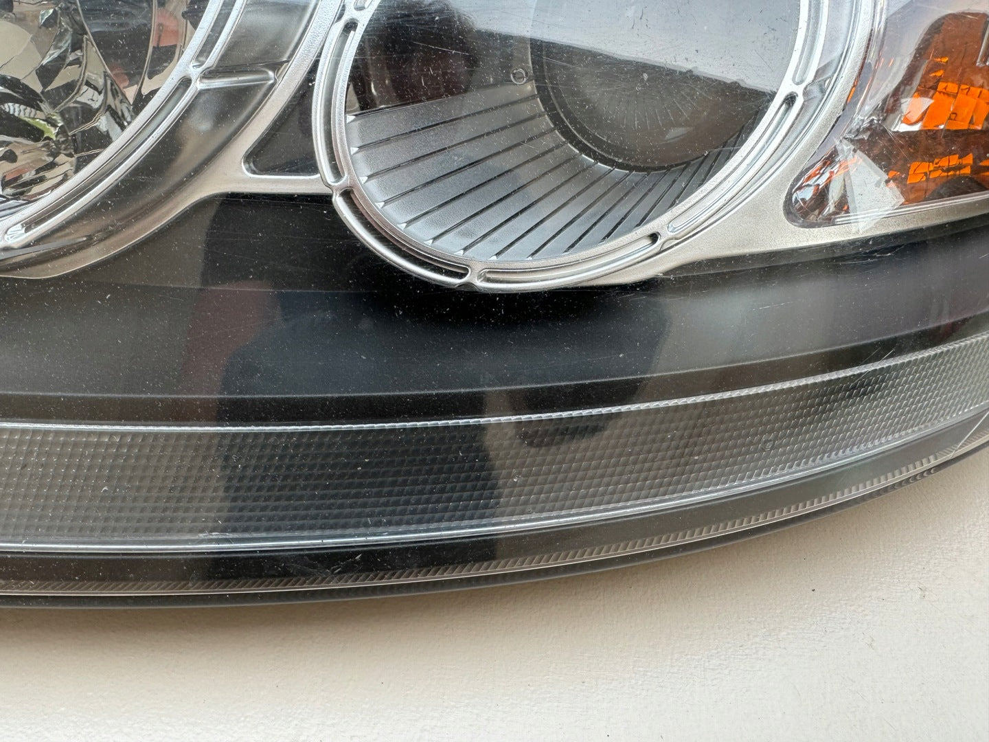 Please note that this headlight comes from a previously owned vehicle and has some cosmetic imperfections. There are visible scratches on the glass which do not affect the functionality but should be considered if aesthetic perfection is a priority. The scratches are superficial and the headlight remains fully operational, providing a practical solution for those looking to replace damaged or malfunctioning headlights without the cost of a brand-new part.