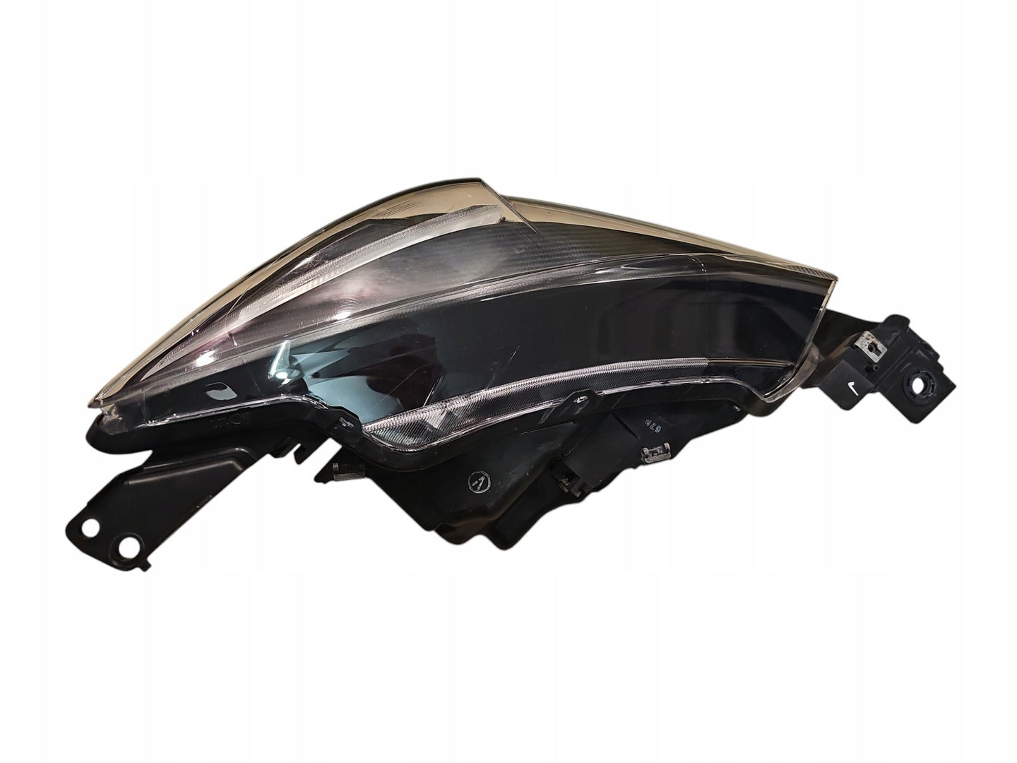 Please be aware that this headlight comes from a previously owned vehicle and has some cosmetic imperfections, including visible scratches on the glass and a damaged bracket. The scratches are superficial and do not impact the headlight's functionality, although they may affect aesthetic appeal for those seeking perfection. The bracket damage can typically be repaired using an original repair kit, enabling a reliable and secure installation that can be performed by individuals with basic mechanical skills or by a professional technician.