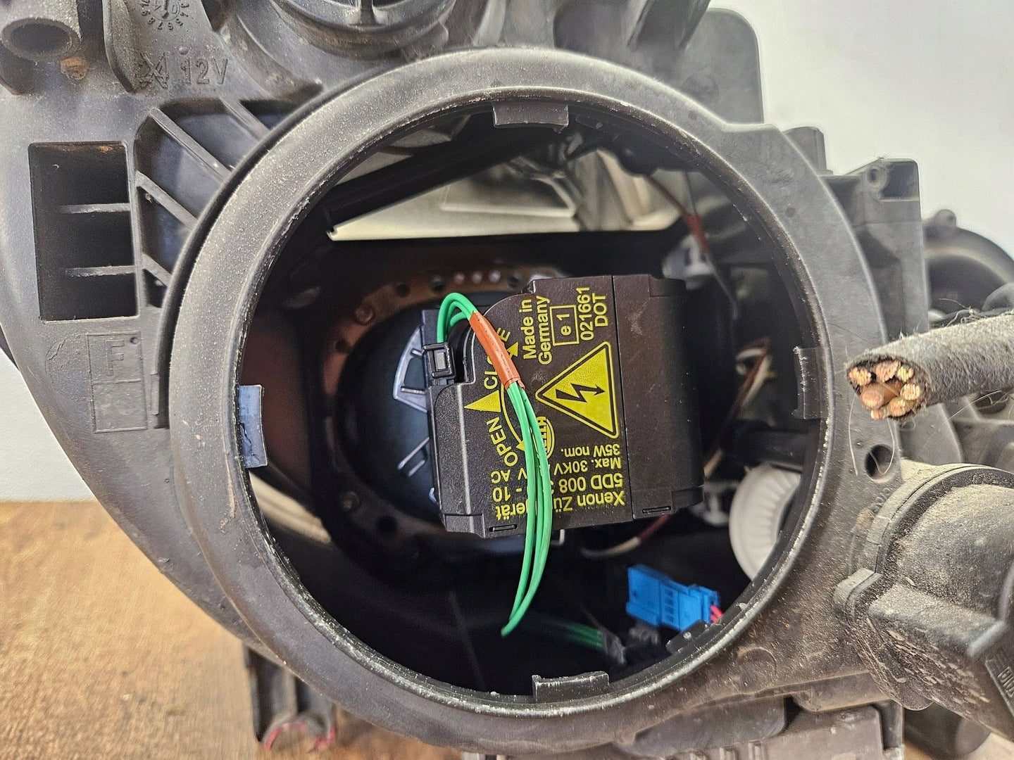 Please be aware that this headlight assembly is from a previously owned vehicle and includes a damaged bracket. However, the bracket damage can often be effectively repaired using an original repair kit, allowing for a reliable and secure installation. This repair can typically be performed by those with basic mechanical skills or by a professional if preferred.