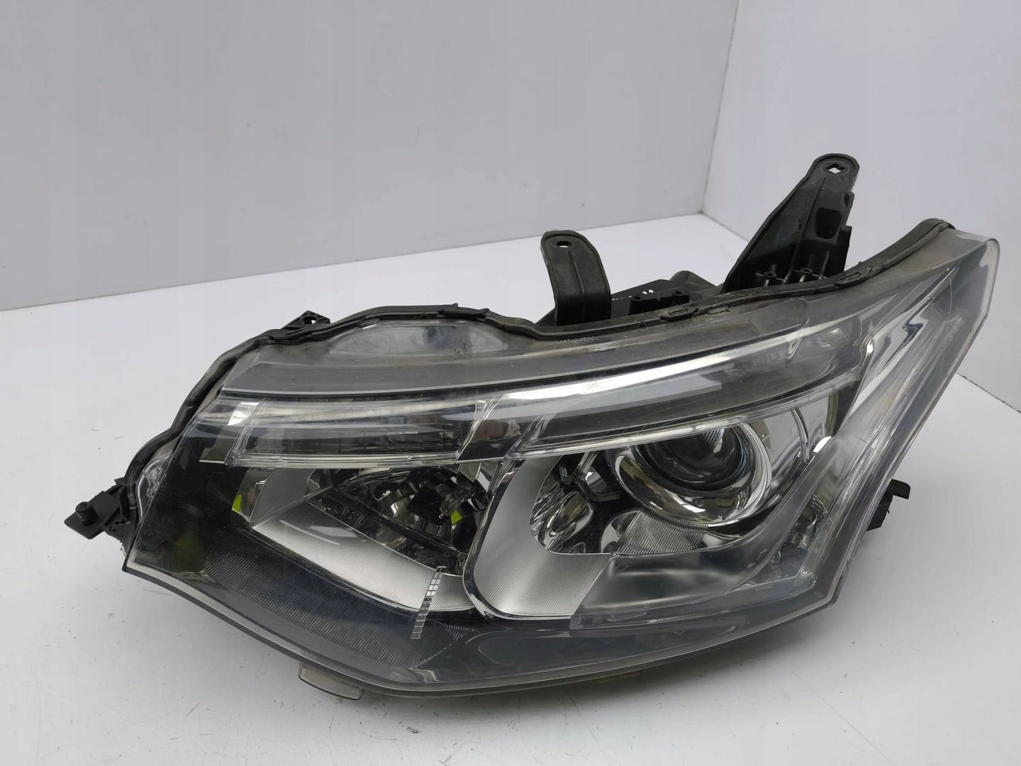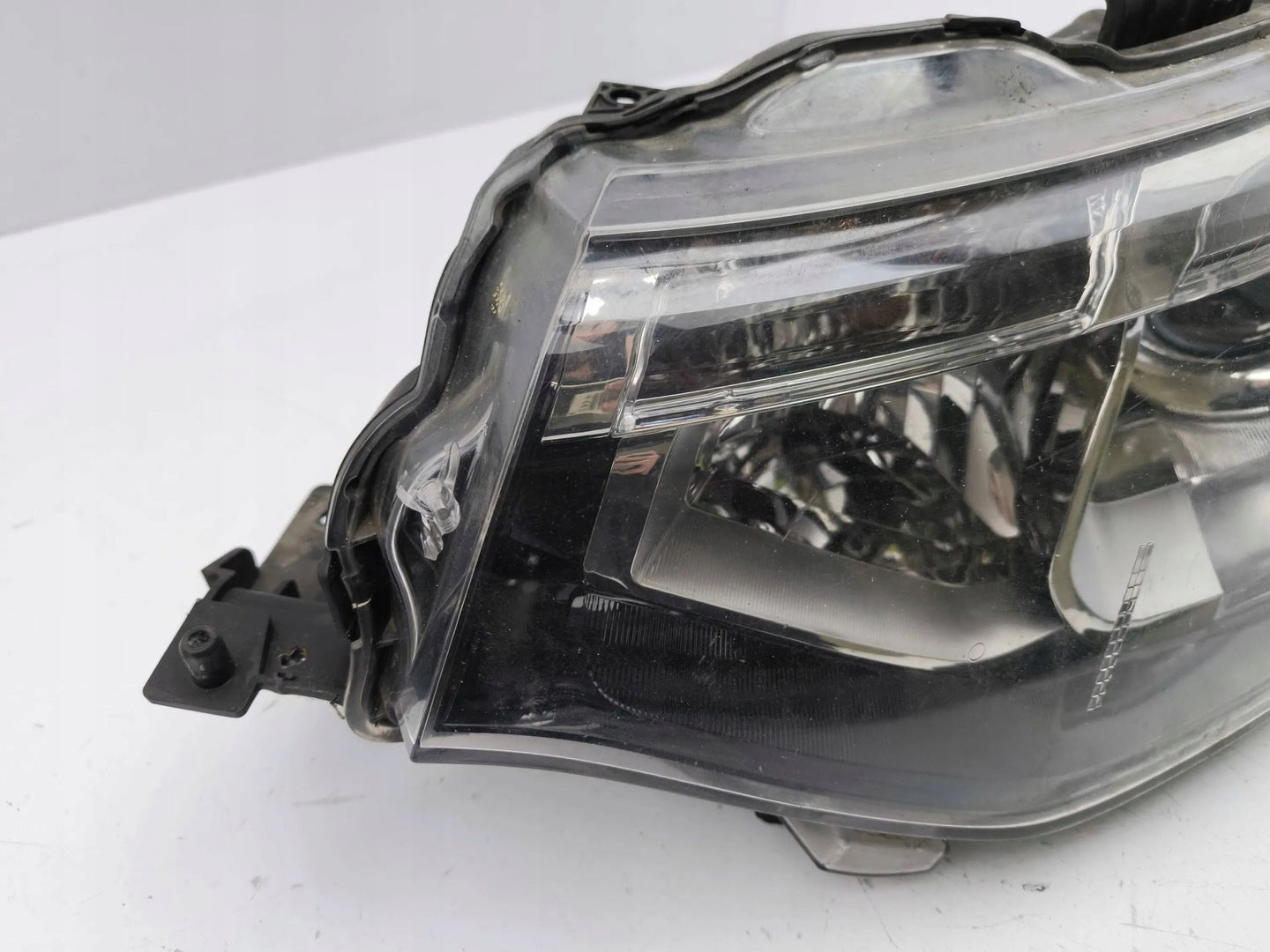 Please be aware that this headlight assembly is from a previously owned vehicle and includes a damaged bracket. However, the bracket damage can often be effectively repaired using an original repair kit, allowing for a reliable and secure installation. This repair can typically be performed by those with basic mechanical skills or by a professional if preferred.