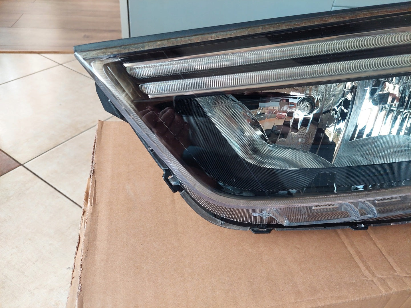 Please be aware that this headlight assembly is from a previously owned vehicle and includes a damaged bracket. However, the bracket damage can often be effectively repaired using an original repair kit, allowing for a reliable and secure installation. This repair can typically be performed by those with basic mechanical skills or by a professional if preferred.