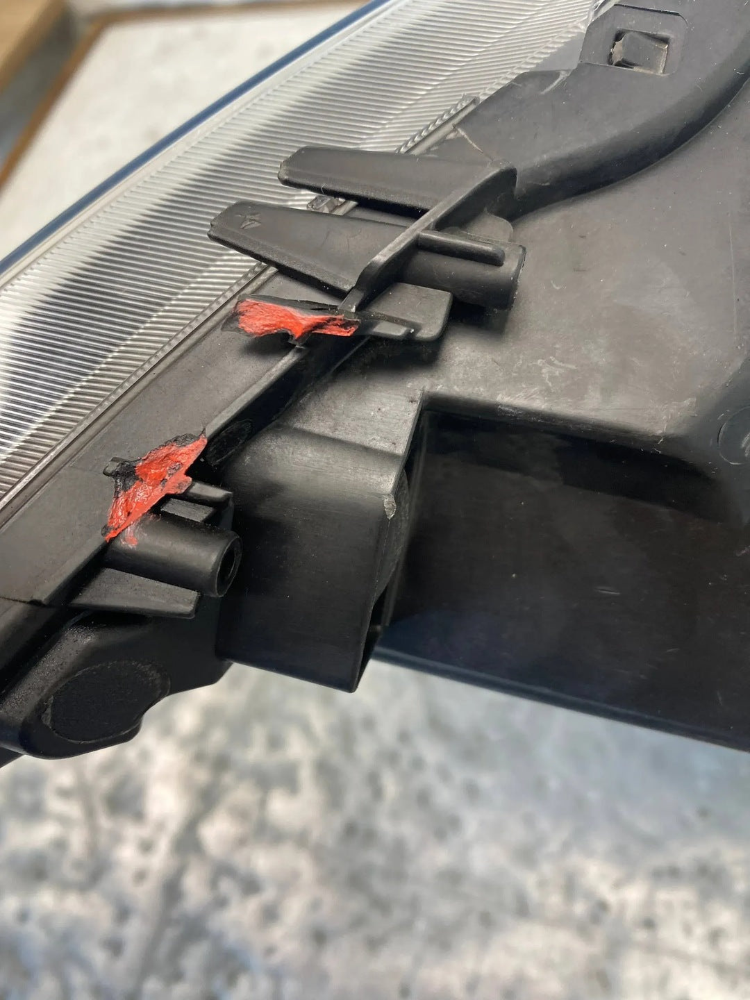 Please be aware that this headlight assembly is from a previously owned vehicle and includes a damaged bracket. However, the bracket damage can often be effectively repaired using an original repair kit, allowing for a reliable and secure installation. This repair can typically be performed by those with basic mechanical skills or by a professional if preferred.