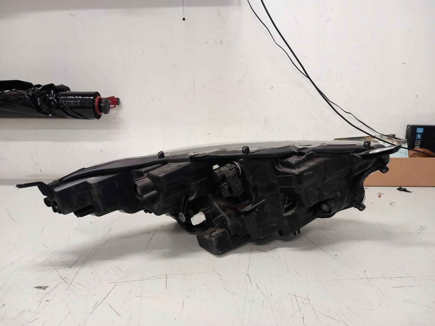 Please be aware that this headlight assembly is from a previously owned vehicle and includes a damaged bracket. However, the bracket damage can often be effectively repaired using an original repair kit, allowing for a reliable and secure installation. This repair can typically be performed by those with basic mechanical skills or by a professional if preferred.