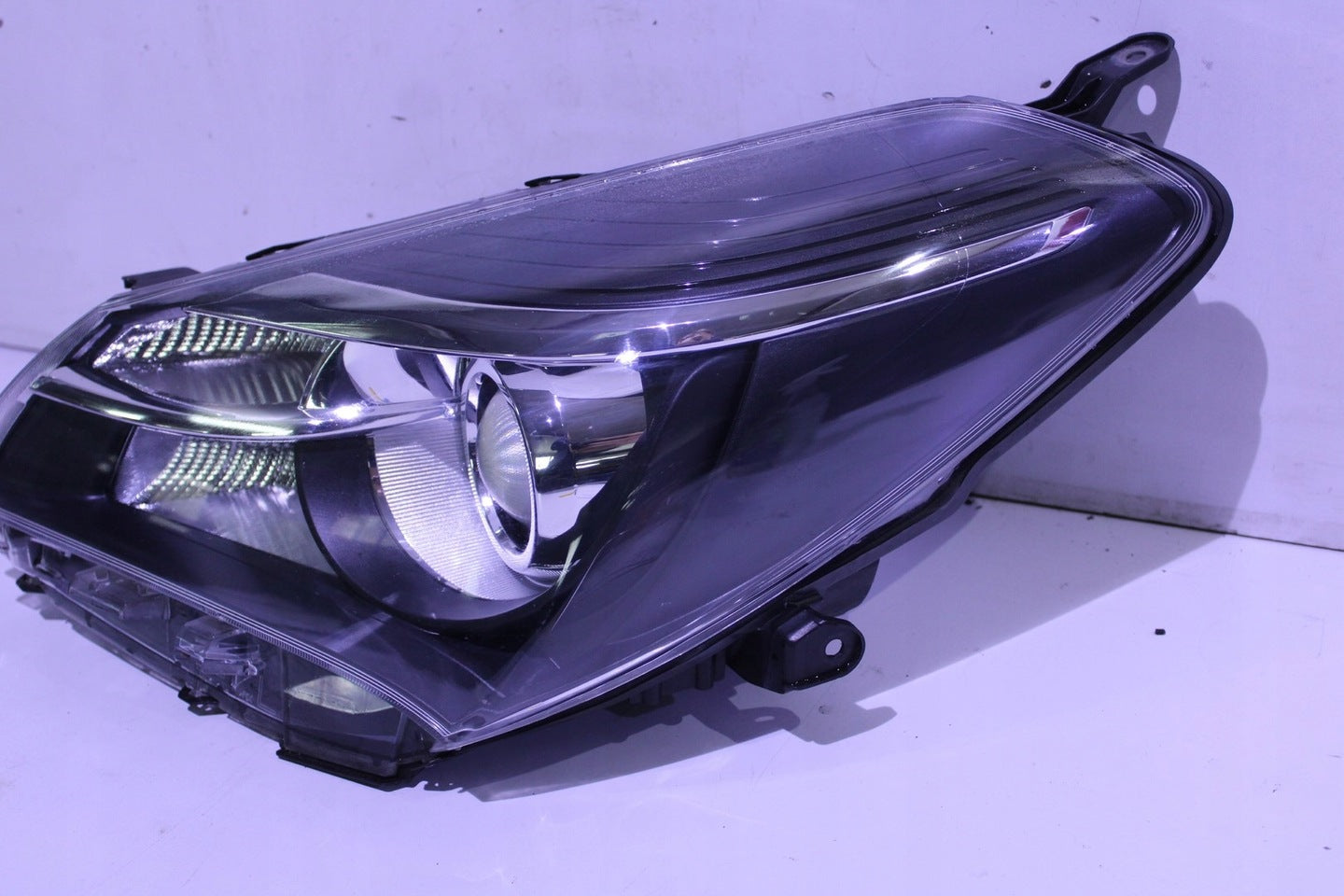 Please be aware that this headlight assembly is from a previously owned vehicle and includes a damaged bracket. However, the bracket damage can often be effectively repaired using an original repair kit, allowing for a reliable and secure installation. This repair can typically be performed by those with basic mechanical skills or by a professional if preferred.