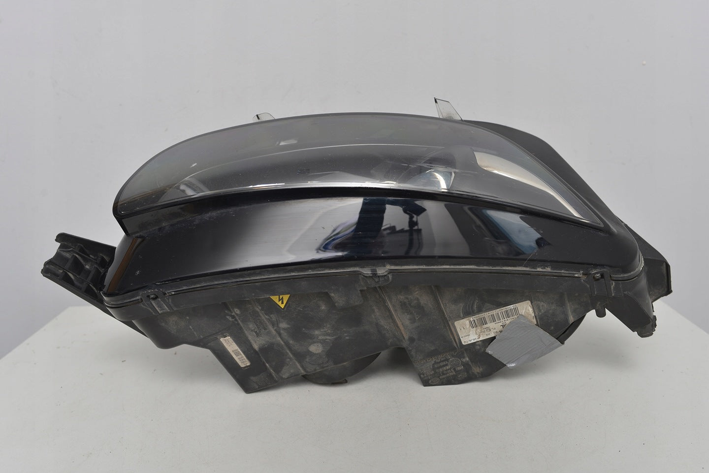 Please be aware that this headlight comes from a previously owned vehicle and has some cosmetic imperfections, including visible scratches on the glass and a damaged bracket. The scratches are superficial and do not impact the headlight's functionality, although they may affect aesthetic appeal for those seeking perfection. The bracket damage can typically be repaired using an original repair kit, enabling a reliable and secure installation that can be performed by individuals with basic mechanical skills or by a professional technician.