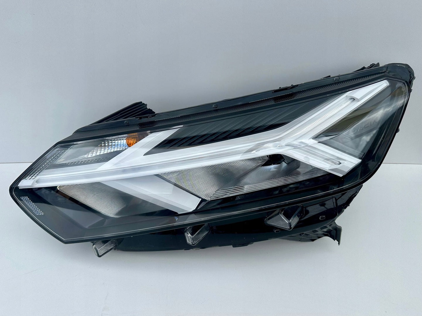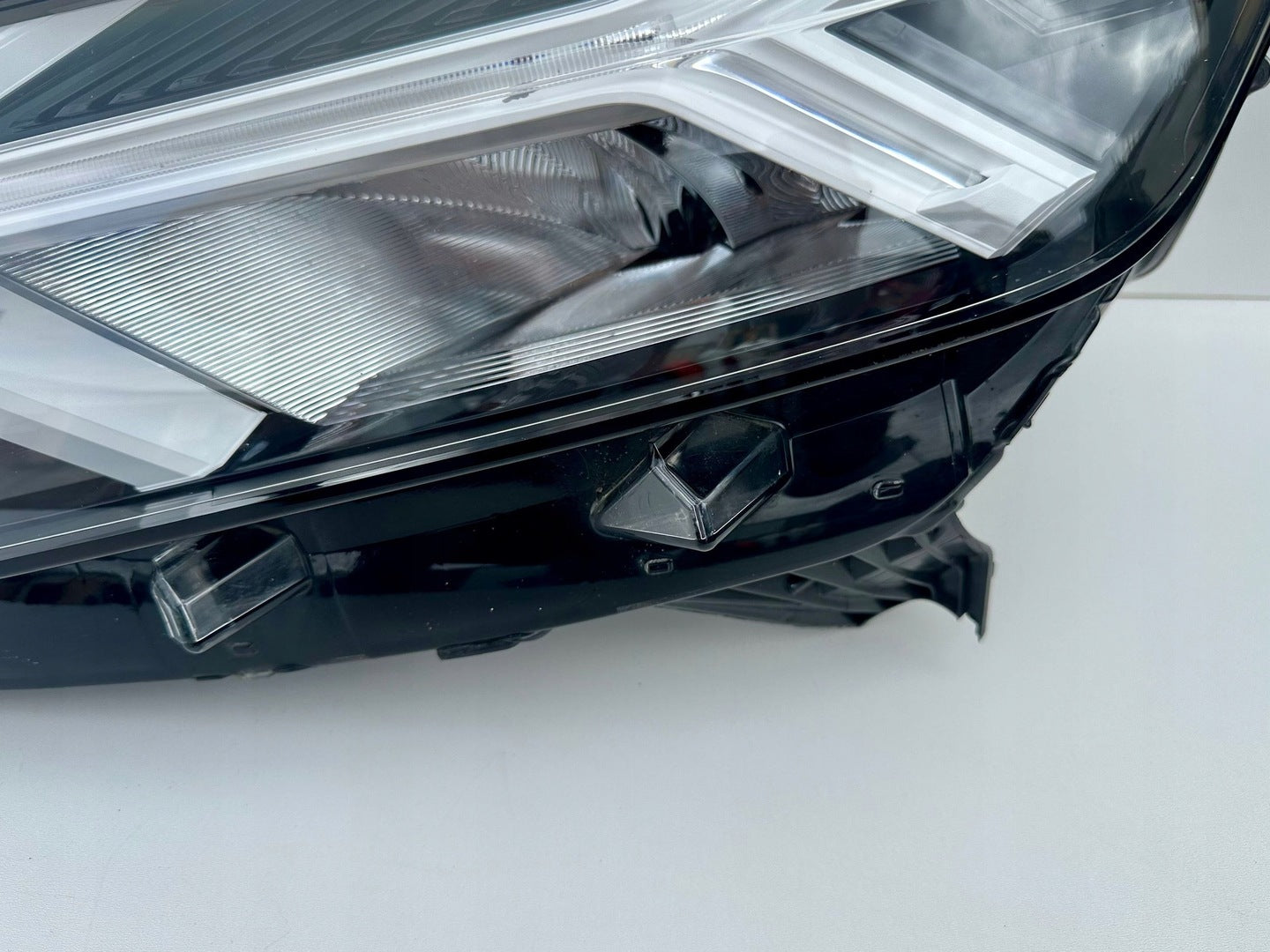 Please be aware that this headlight assembly is from a previously owned vehicle and includes a damaged bracket. However, the bracket damage can often be effectively repaired using an original repair kit, allowing for a reliable and secure installation. This repair can typically be performed by those with basic mechanical skills or by a professional if preferred.