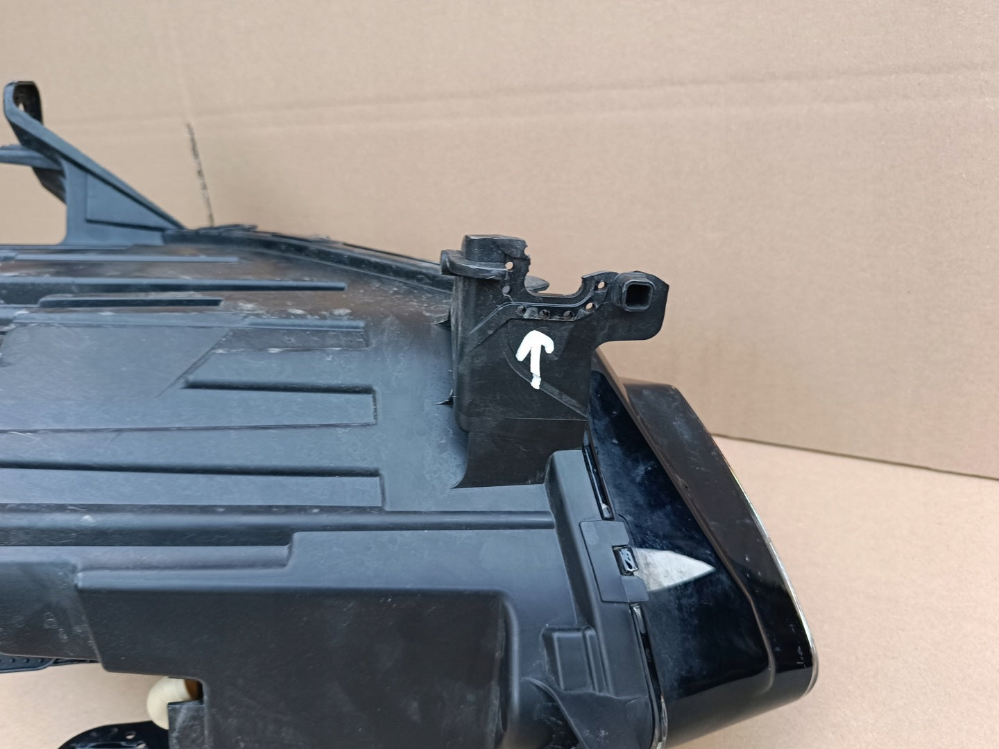 Please be aware that this headlight assembly is from a previously owned vehicle and includes a damaged bracket. However, the bracket damage can often be effectively repaired using an original repair kit, allowing for a reliable and secure installation. This repair can typically be performed by those with basic mechanical skills or by a professional if preferred.