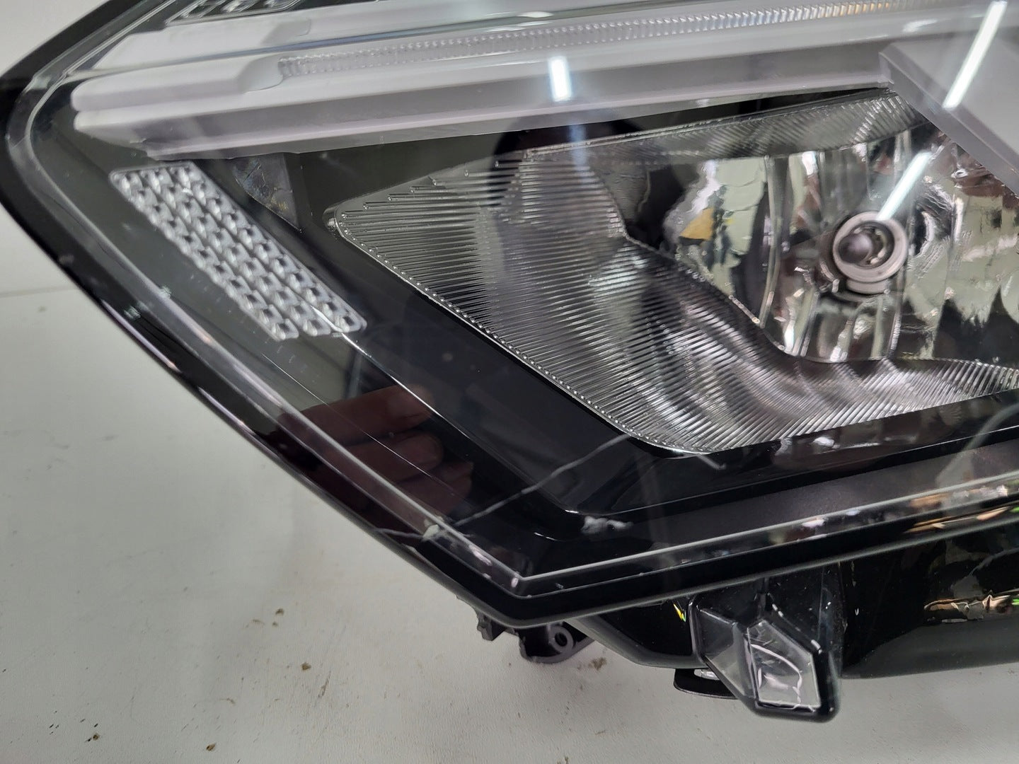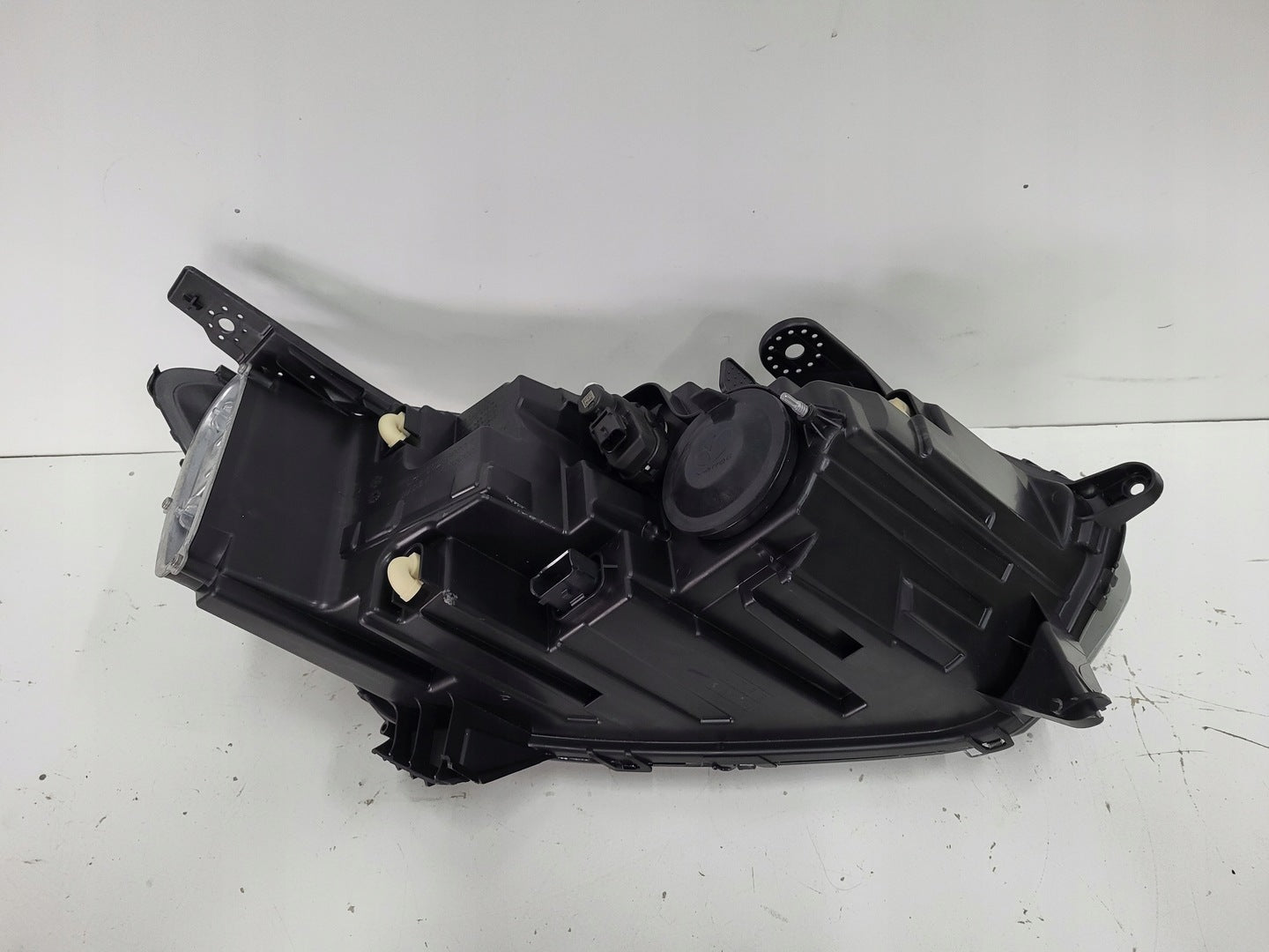 Please be aware that this headlight comes from a previously owned vehicle and has some cosmetic imperfections, including visible scratches on the glass and a damaged bracket. The scratches are superficial and do not impact the headlight's functionality, although they may affect aesthetic appeal for those seeking perfection. The bracket damage can typically be repaired using an original repair kit, enabling a reliable and secure installation that can be performed by individuals with basic mechanical skills or by a professional technician.