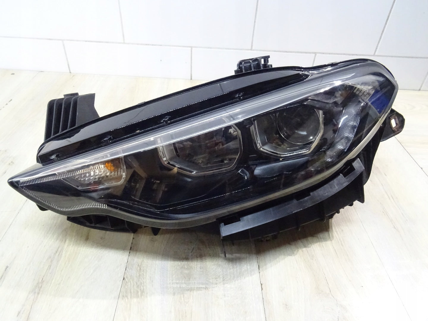 Please be aware that this headlight assembly is from a previously owned vehicle and includes a damaged bracket. However, the bracket damage can often be effectively repaired using an original repair kit, allowing for a reliable and secure installation. This repair can typically be performed by those with basic mechanical skills or by a professional if preferred.