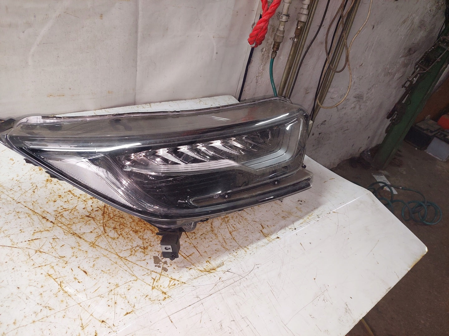 Please be aware that this headlight comes from a previously owned vehicle and has some cosmetic imperfections, including visible scratches on the glass and a damaged bracket. The scratches are superficial and do not impact the headlight's functionality, although they may affect aesthetic appeal for those seeking perfection. The bracket damage can typically be repaired using an original repair kit, enabling a reliable and secure installation that can be performed by individuals with basic mechanical skills or by a professional technician.