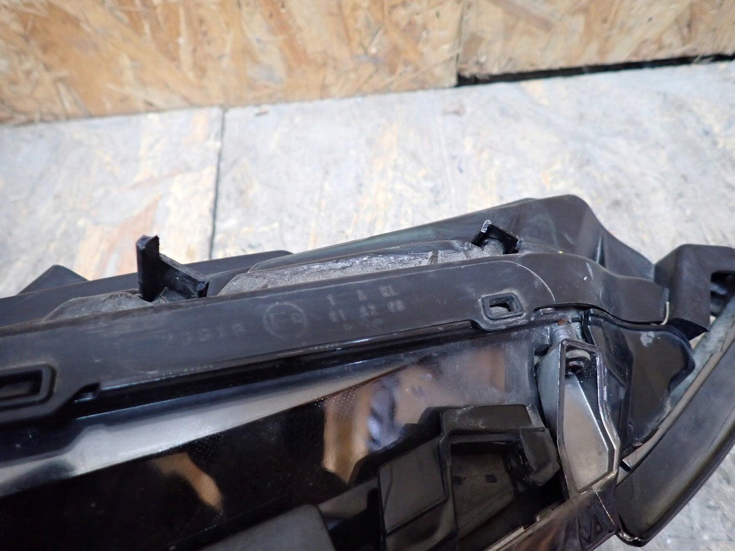 Please be aware that this headlight assembly is from a previously owned vehicle and includes a damaged bracket. However, the bracket damage can often be effectively repaired using an original repair kit, allowing for a reliable and secure installation. This repair can typically be performed by those with basic mechanical skills or by a professional if preferred.