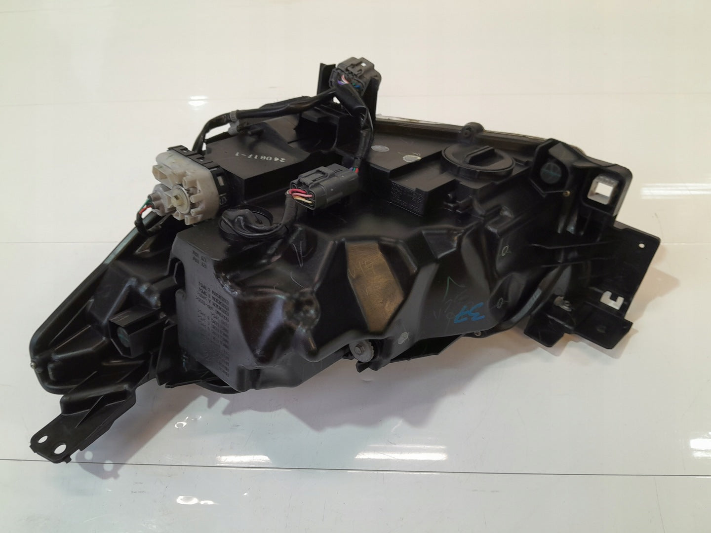 Please be aware that this headlight comes from a previously owned vehicle and has some cosmetic imperfections, including visible scratches on the glass and a damaged bracket. The scratches are superficial and do not impact the headlight's functionality, although they may affect aesthetic appeal for those seeking perfection. The bracket damage can typically be repaired using an original repair kit, enabling a reliable and secure installation that can be performed by individuals with basic mechanical skills or by a professional technician.
