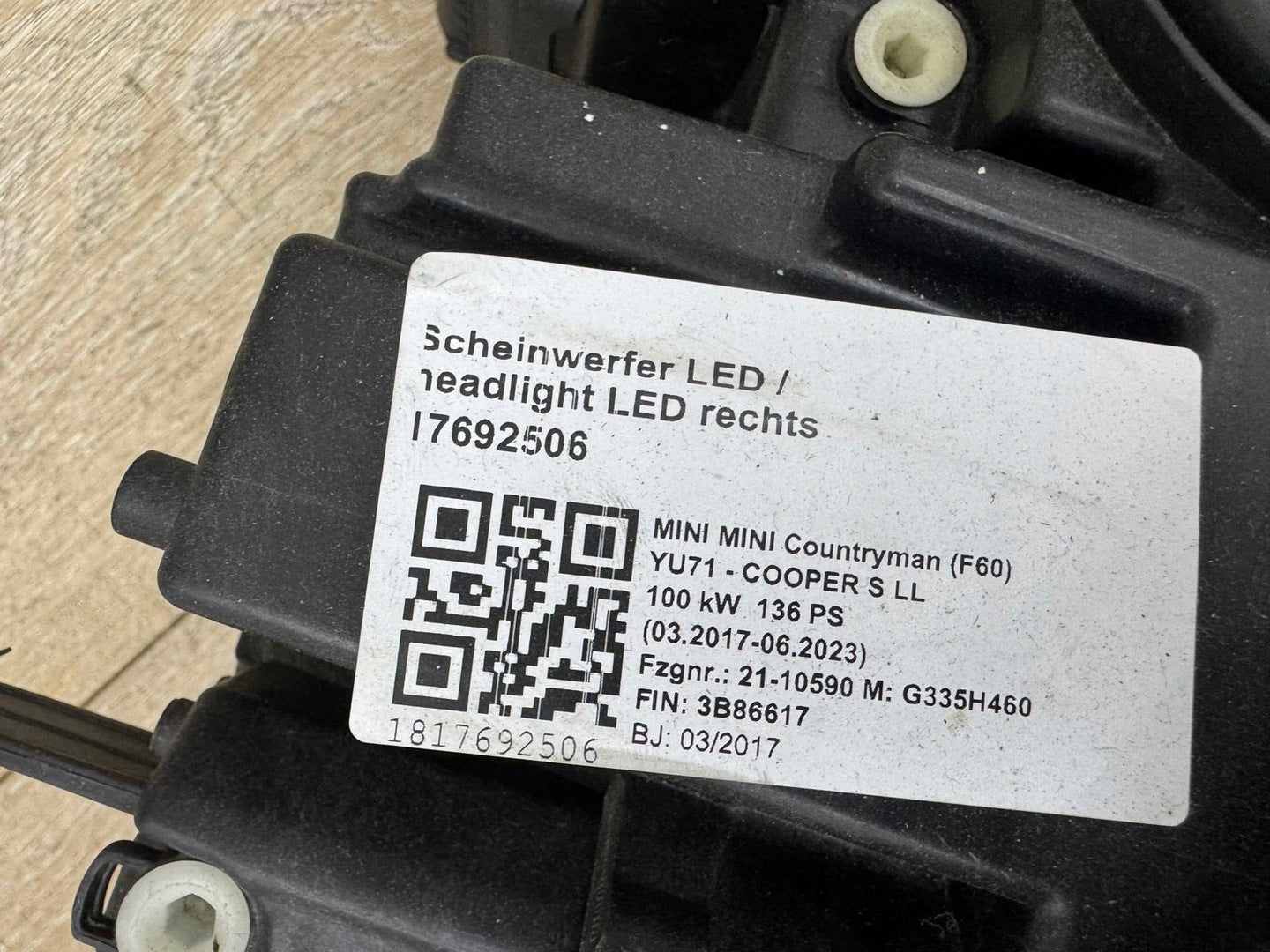 Revitalize your MINI MINI COUNTRYMAN F60 with this durable, cost-effective used headlight. Perfect for direct replacement, it ensures that your car maintains its original look and performance. Get yours today and light up your journey!