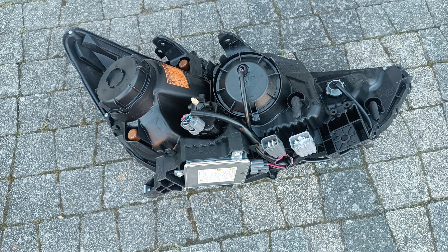 Please be aware that this headlight assembly is from a previously owned vehicle and includes a damaged bracket. However, the bracket damage can often be effectively repaired using an original repair kit, allowing for a reliable and secure installation. This repair can typically be performed by those with basic mechanical skills or by a professional if preferred.