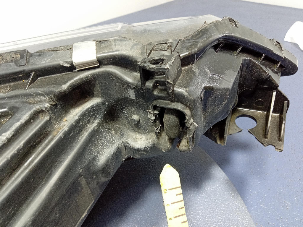 Please be aware that this headlight comes from a previously owned vehicle and has some cosmetic imperfections, including visible scratches on the glass and a damaged bracket. The scratches are superficial and do not impact the headlight's functionality, although they may affect aesthetic appeal for those seeking perfection. The bracket damage can typically be repaired using an original repair kit, enabling a reliable and secure installation that can be performed by individuals with basic mechanical skills or by a professional technician.