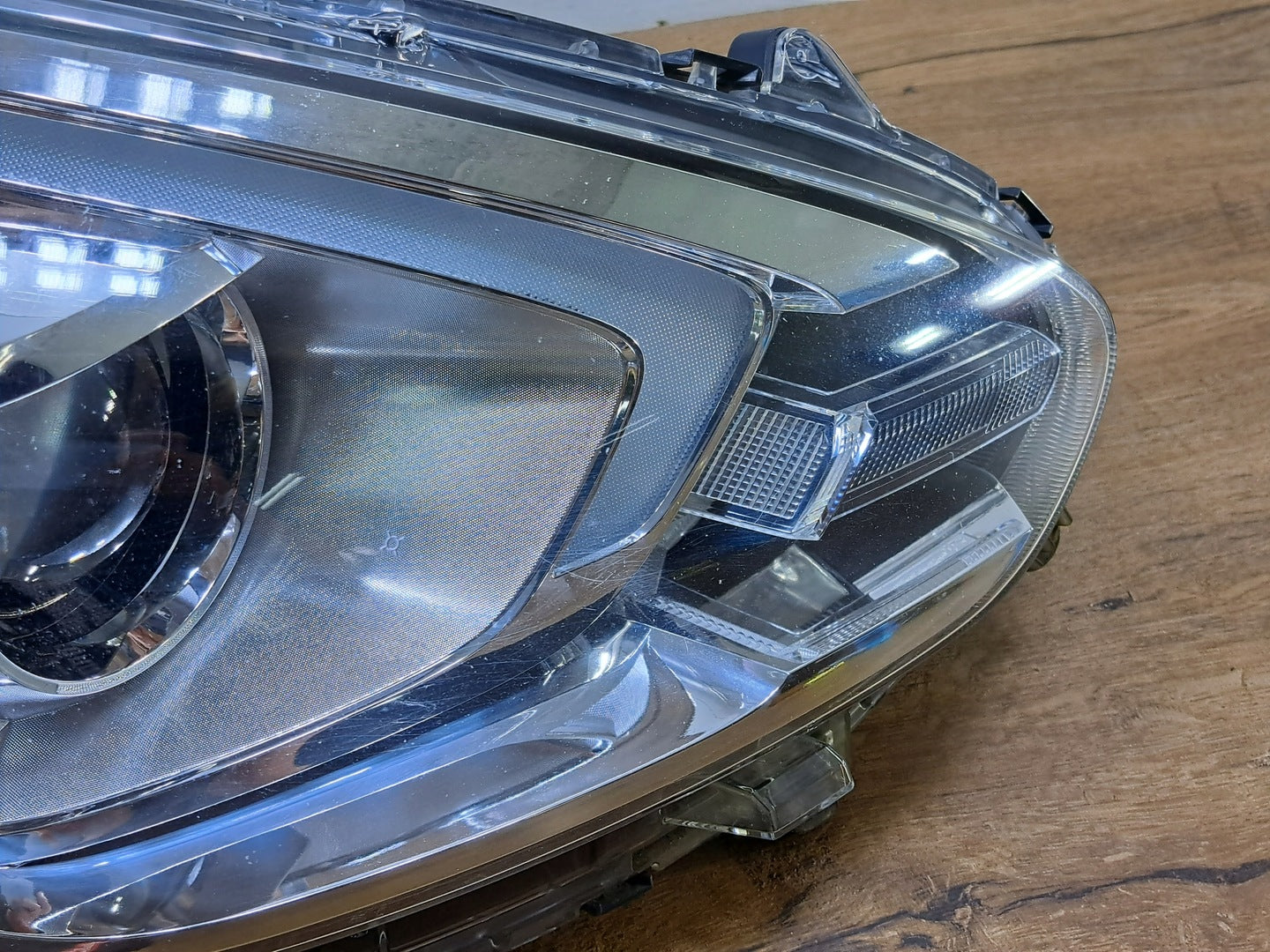 Please be aware that this headlight assembly is from a previously owned vehicle and includes a damaged bracket. However, the bracket damage can often be effectively repaired using an original repair kit, allowing for a reliable and secure installation. This repair can typically be performed by those with basic mechanical skills or by a professional if preferred.