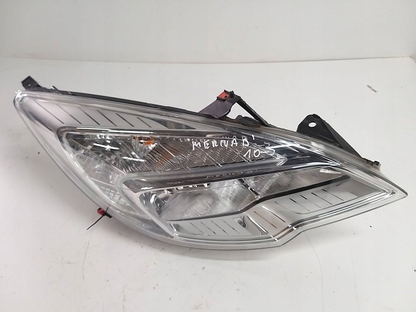 Please be aware that this headlight assembly is from a previously owned vehicle and includes a damaged bracket. However, the bracket damage can often be effectively repaired using an original repair kit, allowing for a reliable and secure installation. This repair can typically be performed by those with basic mechanical skills or by a professional if preferred.