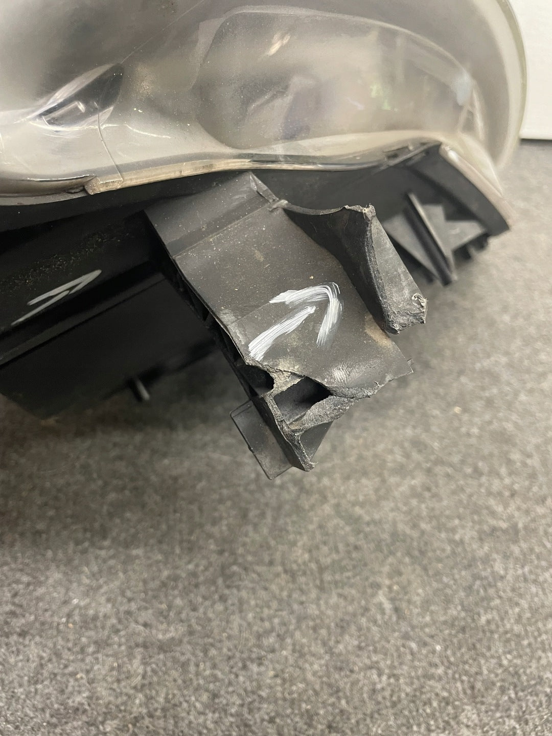 Please be aware that this headlight assembly is from a previously owned vehicle and includes a damaged bracket. However, the bracket damage can often be effectively repaired using an original repair kit, allowing for a reliable and secure installation. This repair can typically be performed by those with basic mechanical skills or by a professional if preferred.