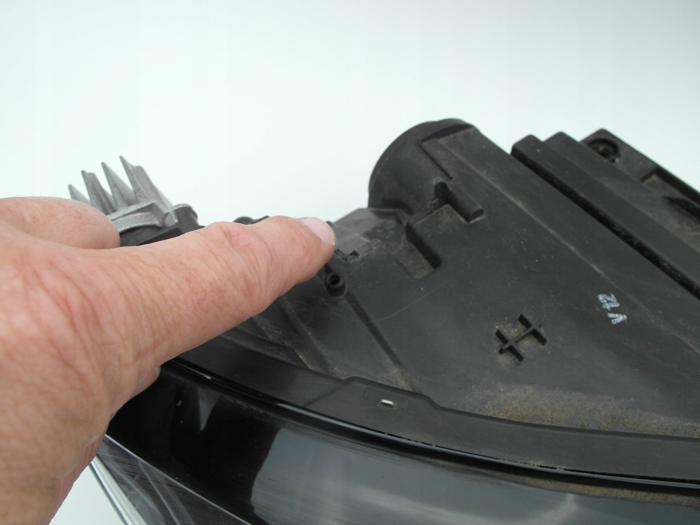 Please be aware that this headlight assembly is from a previously owned vehicle and includes a damaged bracket. However, the bracket damage can often be effectively repaired using an original repair kit, allowing for a reliable and secure installation. This repair can typically be performed by those with basic mechanical skills or by a professional if preferred.