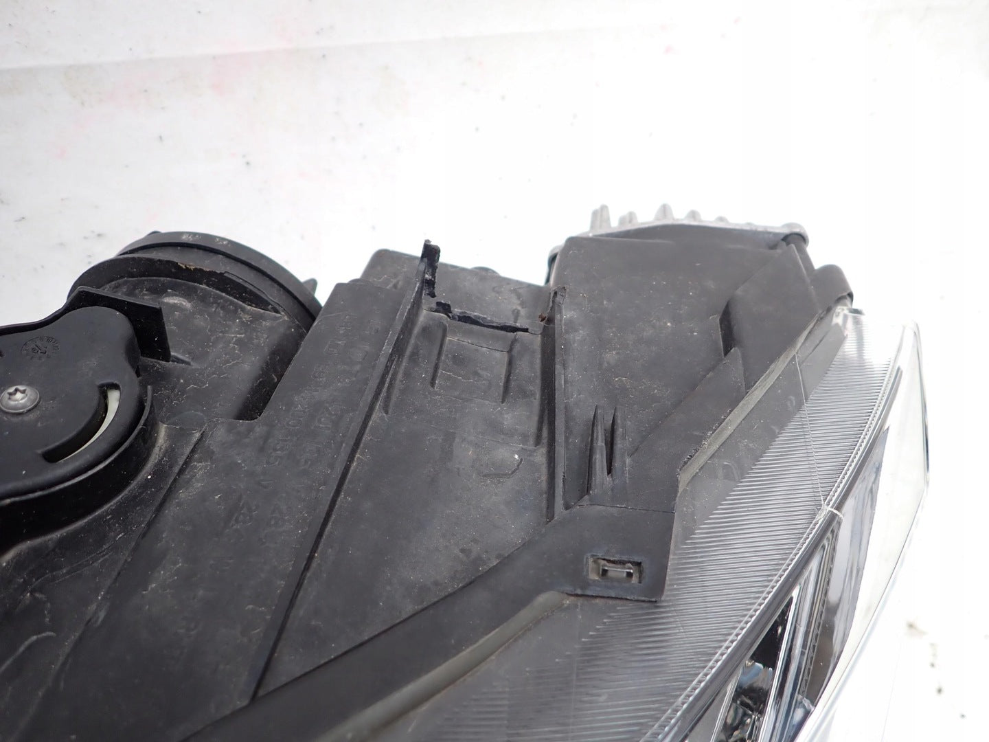 Bitte beachten Sie, dass diese Scheinwerferbaugruppe von einem Fahrzeug aus Vorbesitz stammt und eine beschädigte Halterung enthält. Der Schaden an der Halterung kann jedoch oft mit einem Original-Reparatursatz repariert werden, so dass eine zuverlässige und sichere Installation möglich ist. Diese Reparatur kann in der Regel von Personen mit grundlegenden mechanischen Fähigkeiten oder auf Wunsch von einem Fachmann durchgeführt werden.