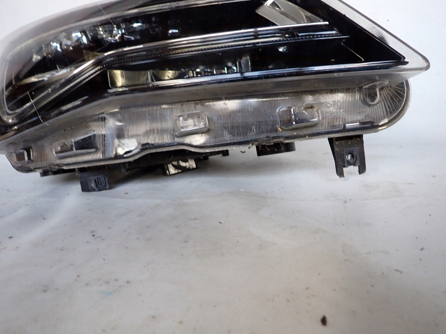 Please be aware that this headlight comes from a previously owned vehicle and has some cosmetic imperfections, including visible scratches on the glass and a damaged bracket. The scratches are superficial and do not impact the headlight's functionality, although they may affect aesthetic appeal for those seeking perfection. The bracket damage can typically be repaired using an original repair kit, enabling a reliable and secure installation that can be performed by individuals with basic mechanical skills or by a professional technician.
