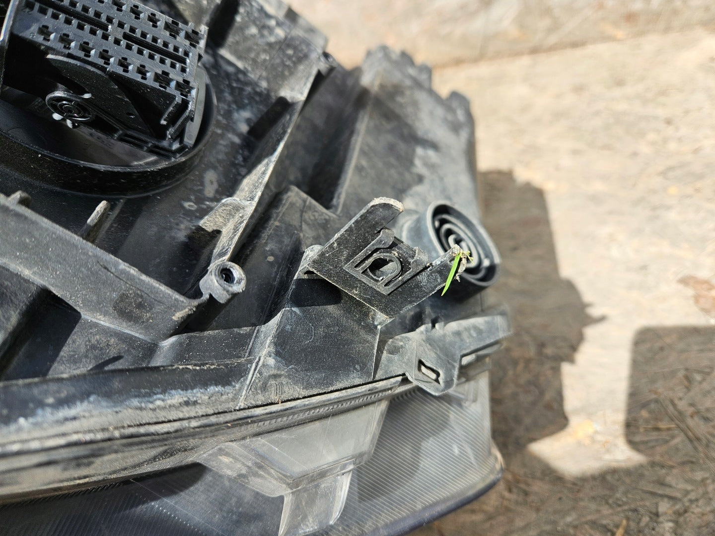 Please be aware that this headlight assembly is from a previously owned vehicle and includes a damaged bracket. However, the bracket damage can often be effectively repaired using an original repair kit, allowing for a reliable and secure installation. This repair can typically be performed by those with basic mechanical skills or by a professional if preferred.
