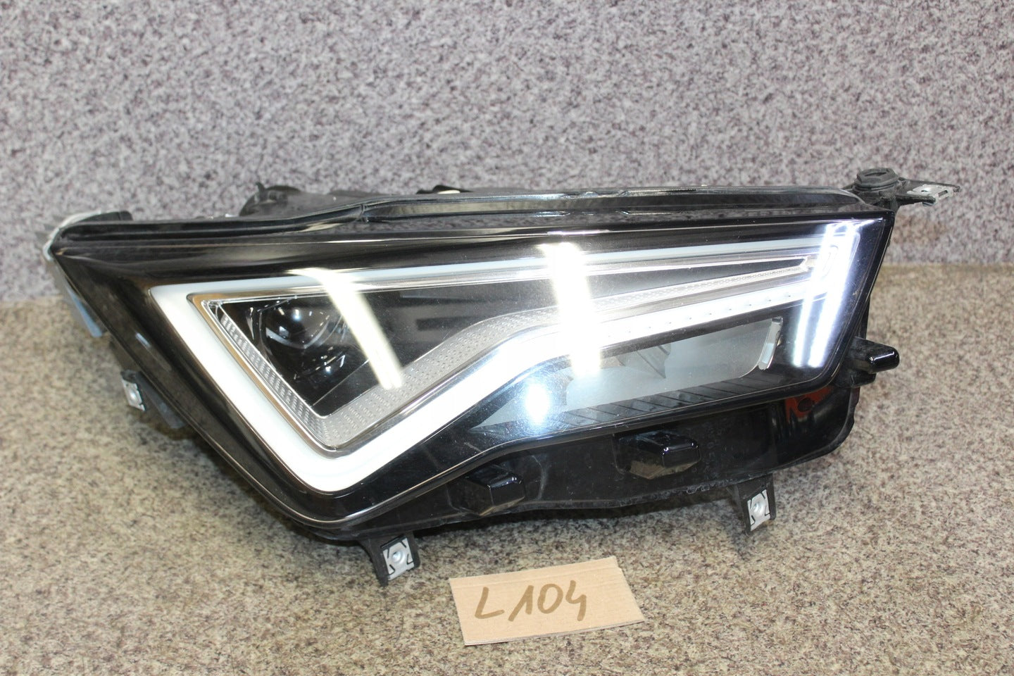 Please be aware that this headlight assembly is from a previously owned vehicle and includes a damaged bracket. However, the bracket damage can often be effectively repaired using an original repair kit, allowing for a reliable and secure installation. This repair can typically be performed by those with basic mechanical skills or by a professional if preferred.