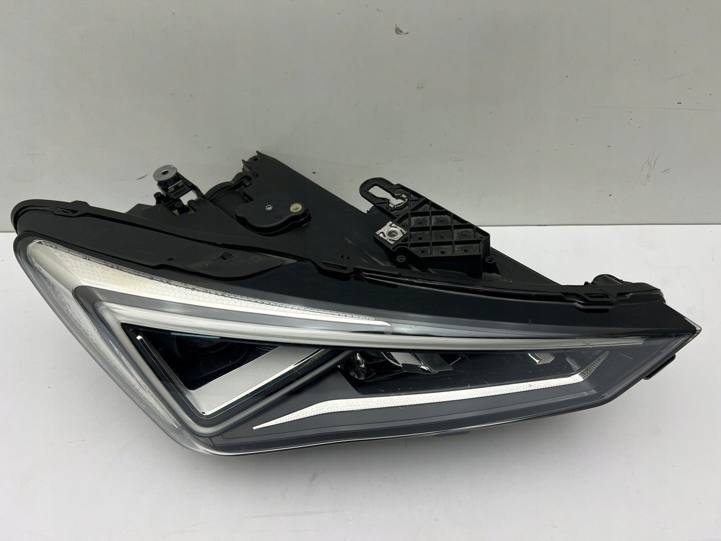 Bitte beachten Sie, dass diese Scheinwerferbaugruppe von einem Fahrzeug aus Vorbesitz stammt und eine beschädigte Halterung enthält. Der Schaden an der Halterung kann jedoch oft mit einem Original-Reparatursatz repariert werden, so dass eine zuverlässige und sichere Installation möglich ist. Diese Reparatur kann in der Regel von Personen mit grundlegenden mechanischen Fähigkeiten oder auf Wunsch von einem Fachmann durchgeführt werden.
