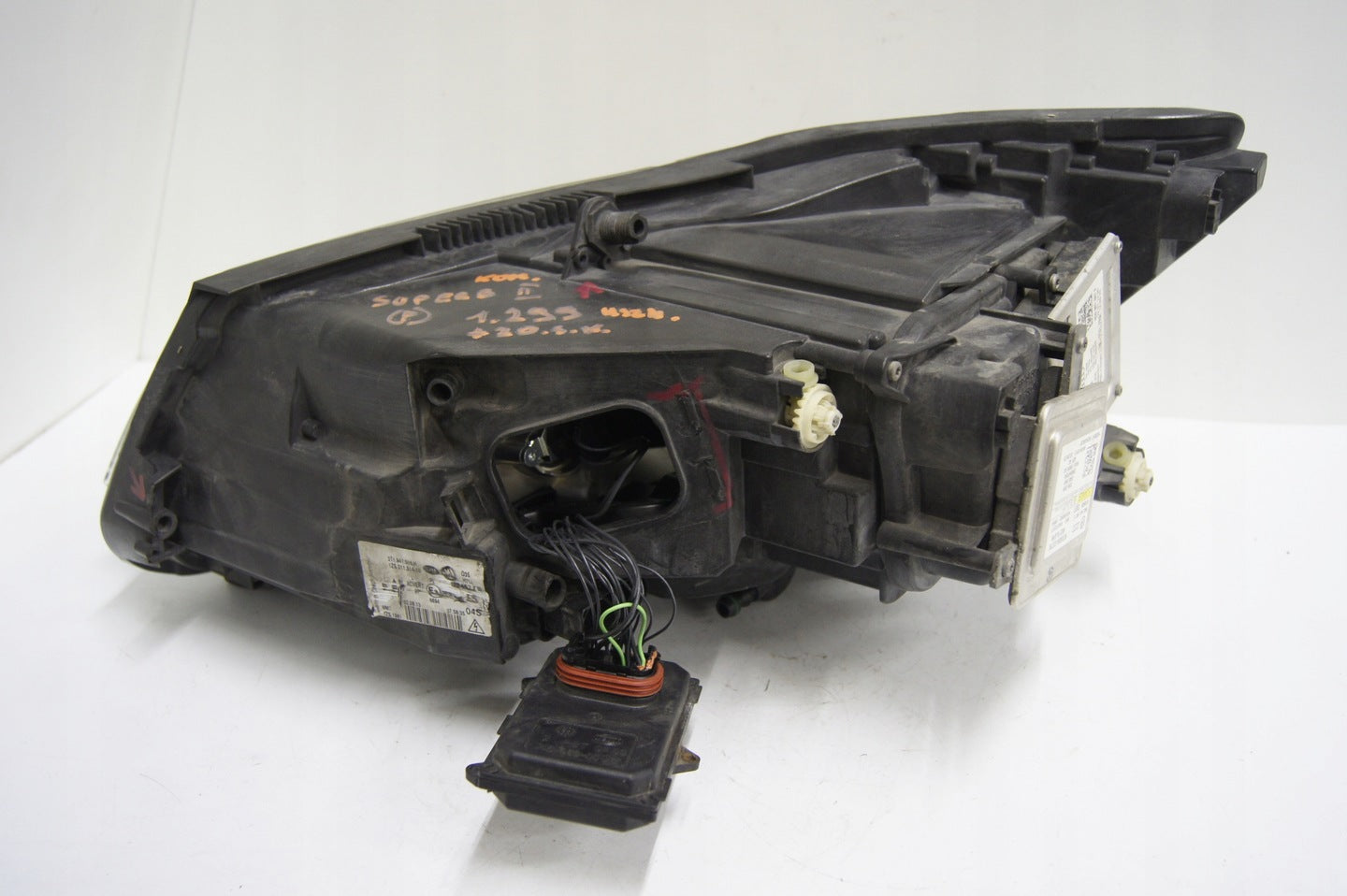 Bitte beachten Sie, dass diese Scheinwerferbaugruppe von einem Fahrzeug aus Vorbesitz stammt und eine beschädigte Halterung enthält. Der Schaden an der Halterung kann jedoch oft mit einem Original-Reparatursatz repariert werden, so dass eine zuverlässige und sichere Installation möglich ist. Diese Reparatur kann in der Regel von Personen mit grundlegenden mechanischen Fähigkeiten oder auf Wunsch von einem Fachmann durchgeführt werden.