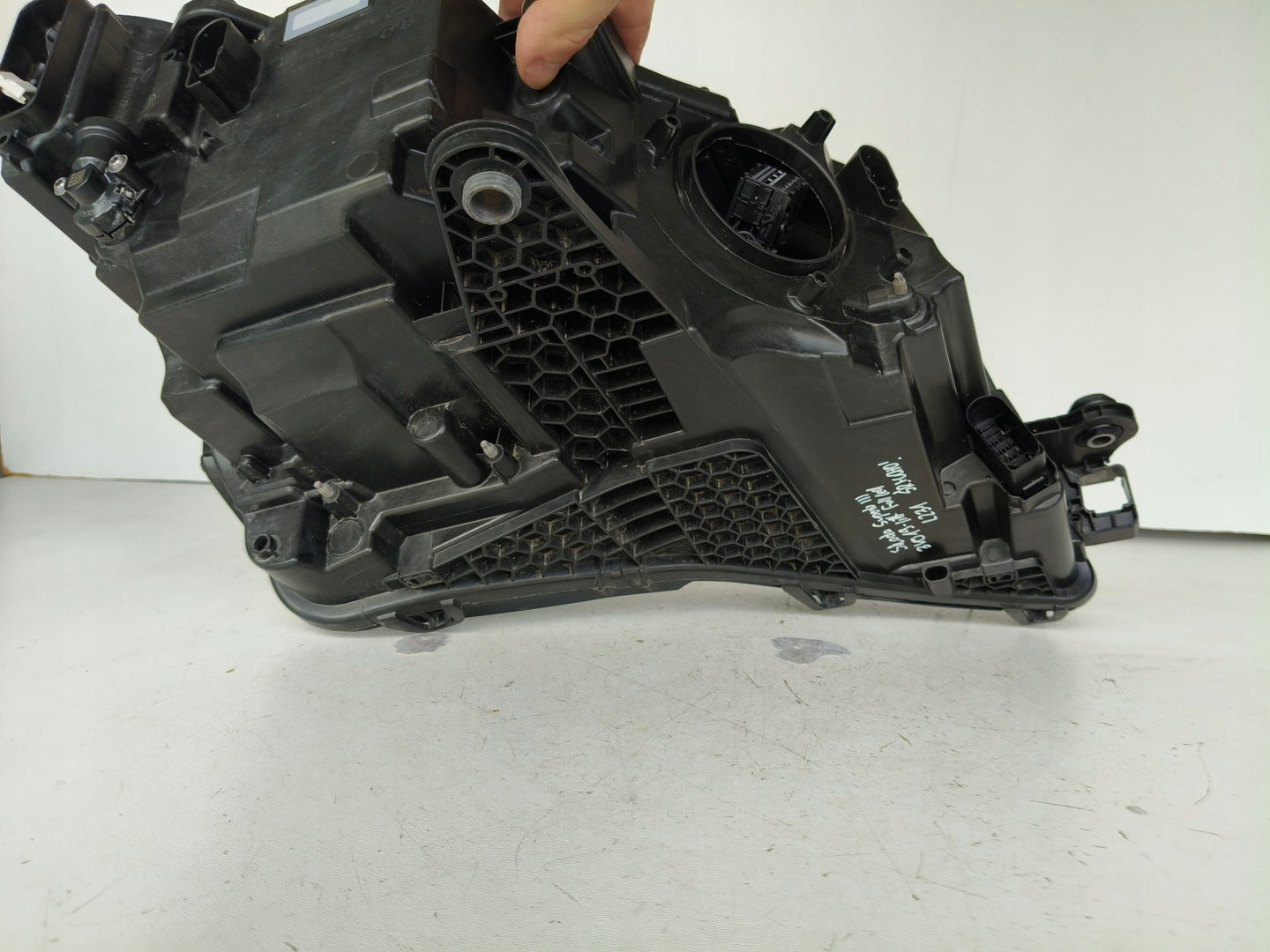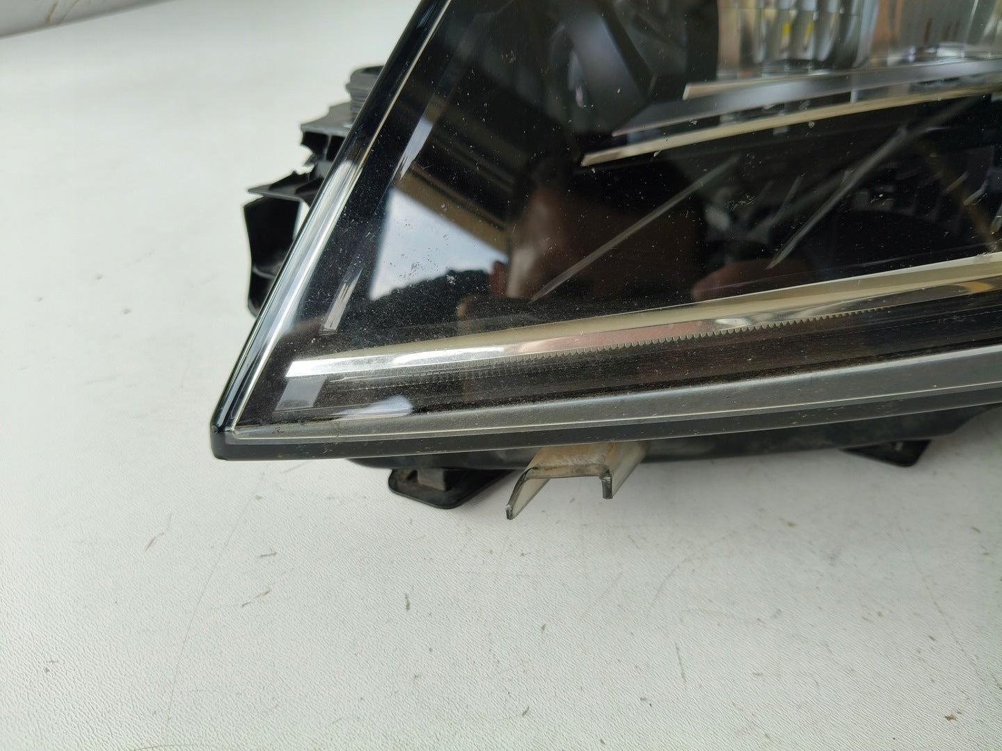 Please be aware that this headlight comes from a previously owned vehicle and has some cosmetic imperfections, including visible scratches on the glass and a damaged bracket. The scratches are superficial and do not impact the headlight's functionality, although they may affect aesthetic appeal for those seeking perfection. The bracket damage can typically be repaired using an original repair kit, enabling a reliable and secure installation that can be performed by individuals with basic mechanical skills or by a professional technician.