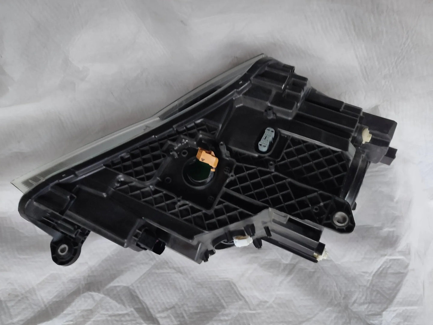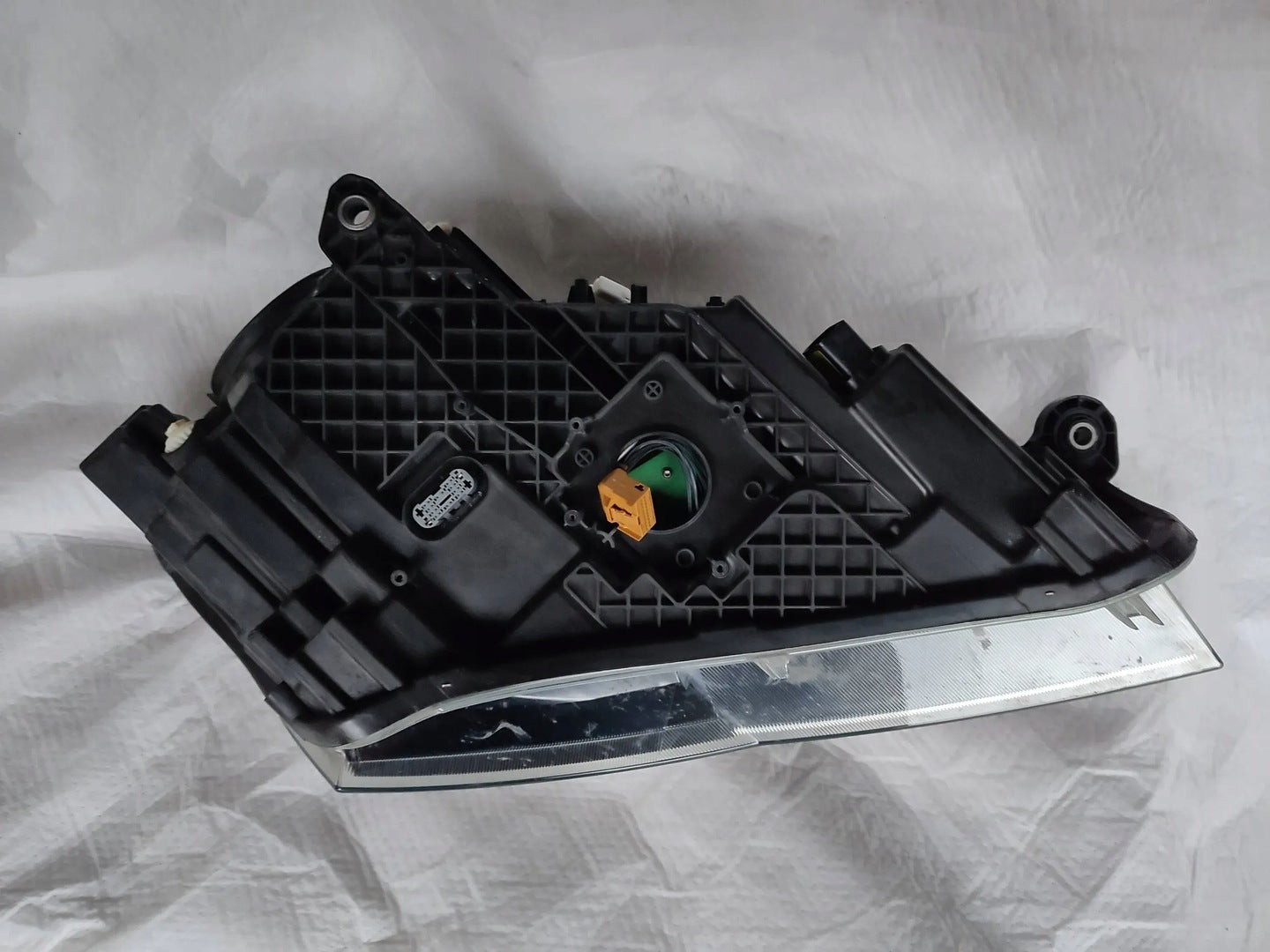 Please be aware that this headlight assembly is from a previously owned vehicle and includes a damaged bracket. However, the bracket damage can often be effectively repaired using an original repair kit, allowing for a reliable and secure installation. This repair can typically be performed by those with basic mechanical skills or by a professional if preferred.