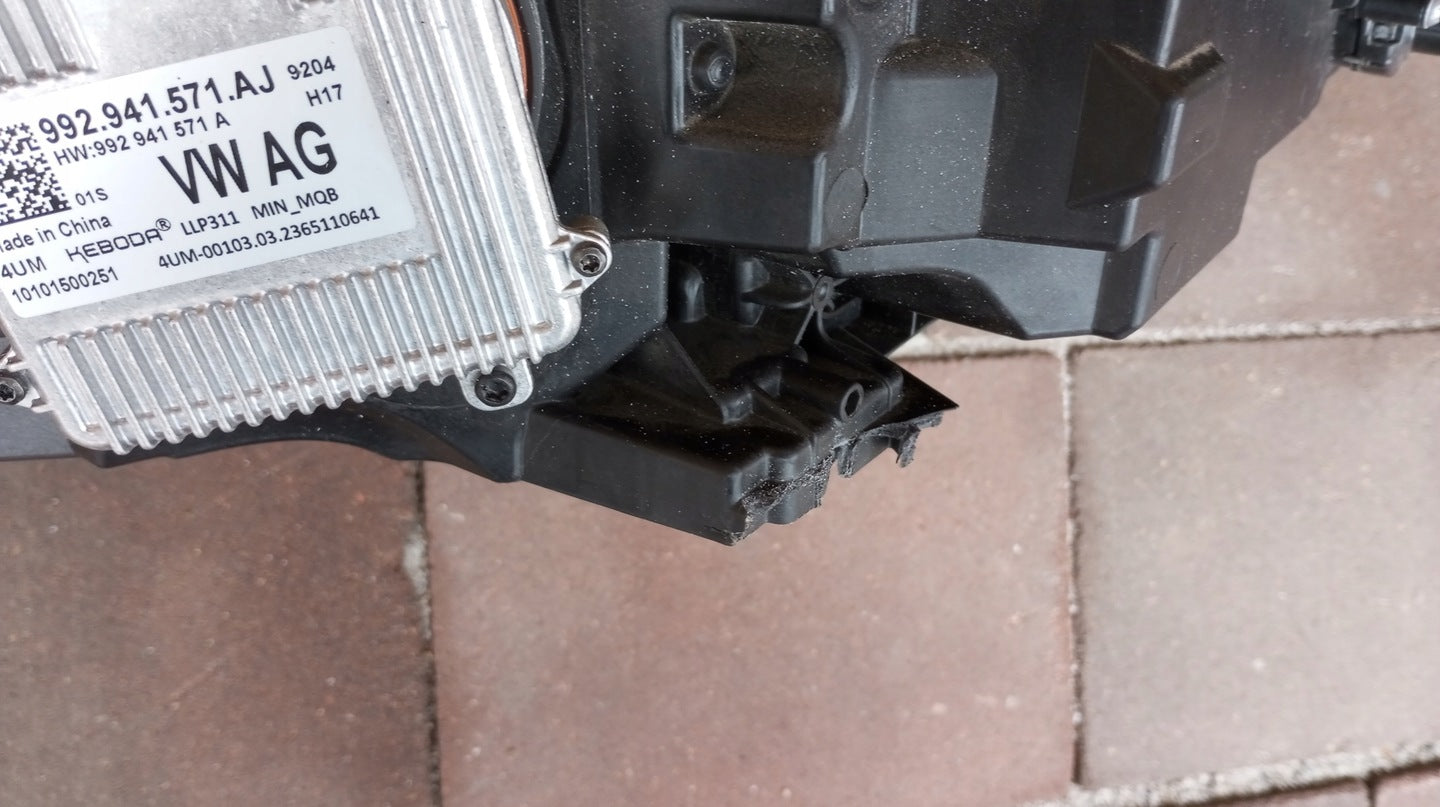 Please be aware that this headlight comes from a previously owned vehicle and has some cosmetic imperfections, including visible scratches on the glass and a damaged bracket. The scratches are superficial and do not impact the headlight's functionality, although they may affect aesthetic appeal for those seeking perfection. The bracket damage can typically be repaired using an original repair kit, enabling a reliable and secure installation that can be performed by individuals with basic mechanical skills or by a professional technician.