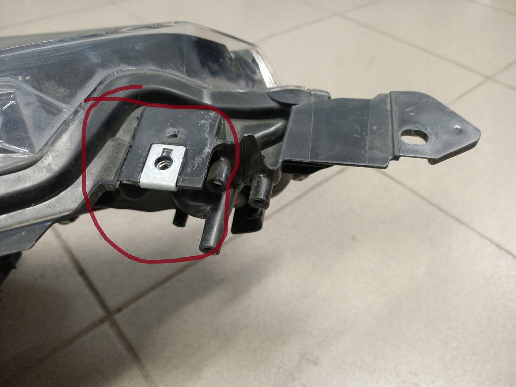 Bitte beachten Sie, dass diese Scheinwerferbaugruppe von einem Fahrzeug aus Vorbesitz stammt und eine beschädigte Halterung enthält. Der Schaden an der Halterung kann jedoch oft mit einem Original-Reparatursatz repariert werden, so dass eine zuverlässige und sichere Installation möglich ist. Diese Reparatur kann in der Regel von Personen mit grundlegenden mechanischen Fähigkeiten oder auf Wunsch von einem Fachmann durchgeführt werden.
