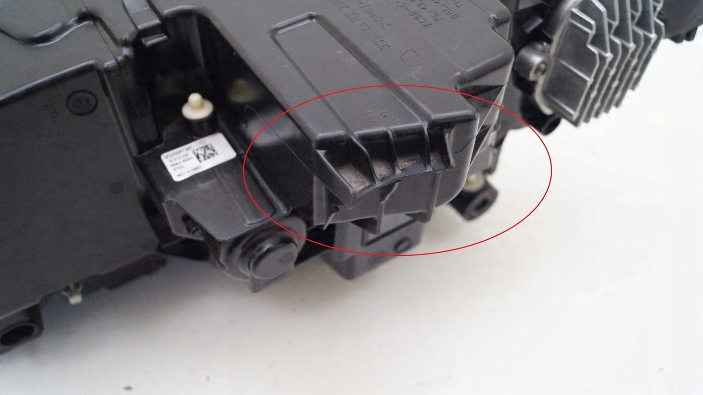 Bitte beachten Sie, dass diese Scheinwerferbaugruppe von einem Fahrzeug aus Vorbesitz stammt und eine beschädigte Halterung enthält. Der Schaden an der Halterung kann jedoch oft mit einem Original-Reparatursatz repariert werden, so dass eine zuverlässige und sichere Installation möglich ist. Diese Reparatur kann in der Regel von Personen mit grundlegenden mechanischen Fähigkeiten oder auf Wunsch von einem Fachmann durchgeführt werden.